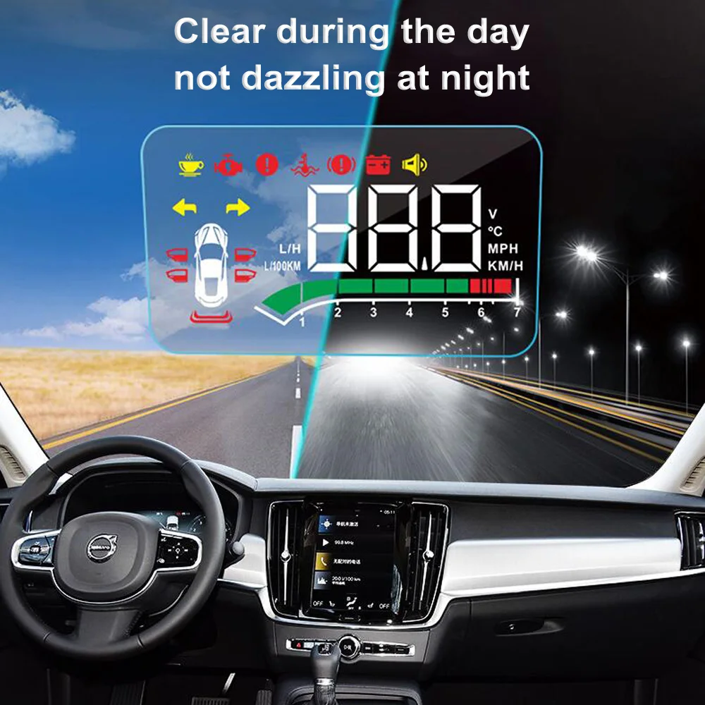 HUD имеет 21 безупречный вид:1. Многоцветная конструкция облегчает чтение на экране важных деталей для быстрого просмотра;2. Использование нанотехнологий для устранения нежелательных отражений облегчает Чтение информации;3. Возможность отображения огромного диапазона статистики автомобилей, включая: скорость, скорость вращения двигателя, температуру воды, напряжение батареи, мгновенное потребление топлива, среднее потребление топлива, местное время, время одиночного вождения, измерение пробега, напоминание о смене, напоминание об утомленном драйвере, Сигнализация низкого напряжения, высокотемпературная сигнализация, сигнализация скорости, сигнализация о неисправности двигателя, Устранение кода неисправности, возможность изменения единиц, например, километр/миля4. Автоматическое включение и выключение с транспортным средством5. Автоматический и ручной режим регулировки яркости.