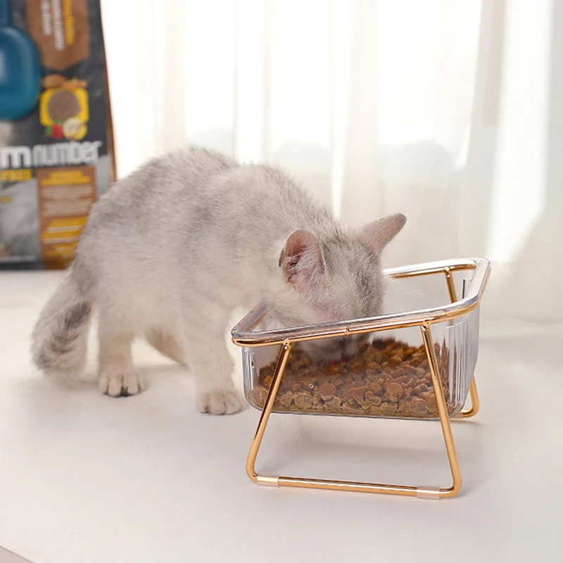 Отзывы о Модная двойная миска для кошек прозрачная собак с подставкой кормления питомцев