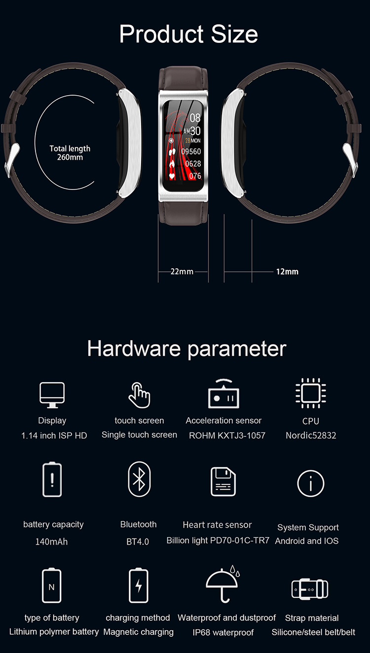 Другие функции: Facebook/twitter/whatsapp/WeChat/QQ/sms-сообщения, счетчик шагов, напоминание о сидячем положении, мониторинг сна и т. д.