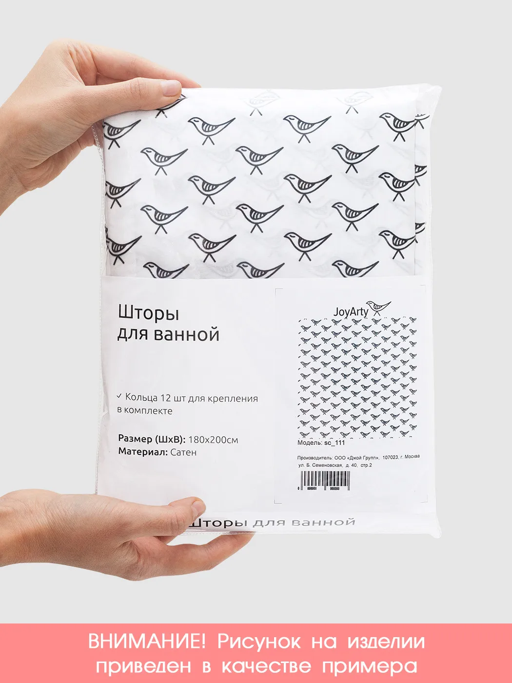 Комплектация: шторка для ванной 180х200 см, крючки - 12 шт. Материал: сатен; состав: полиэстер 100%. Плотность: 80 гр/кв.м.Шторка для душа JoyArty станет ярким акцентом ванной комнаты. Изделие из 100% полиэстера плотностью 80 г/м2 обработано водоотталкивающей пропиткой, благодаря чему защищает пол от брызг и влаги. Фотоштора для ванны не нуждается в утяжелителях и магнитах, она прекрасно расправляется под собственным весом. Шторка, размером 180х200 см идет в комплекте с 12 крючками, отверстия для которых качественно и надежно обработаны оверлоком и не имеют люверсов. Рисунок нанесен на внешнюю сторону изделия с помощью сублимационной печати, такие принты не боятся влаги и не смываются под горячей водой. Обратная сторона шторки - белая, но рисунок просвечивает.