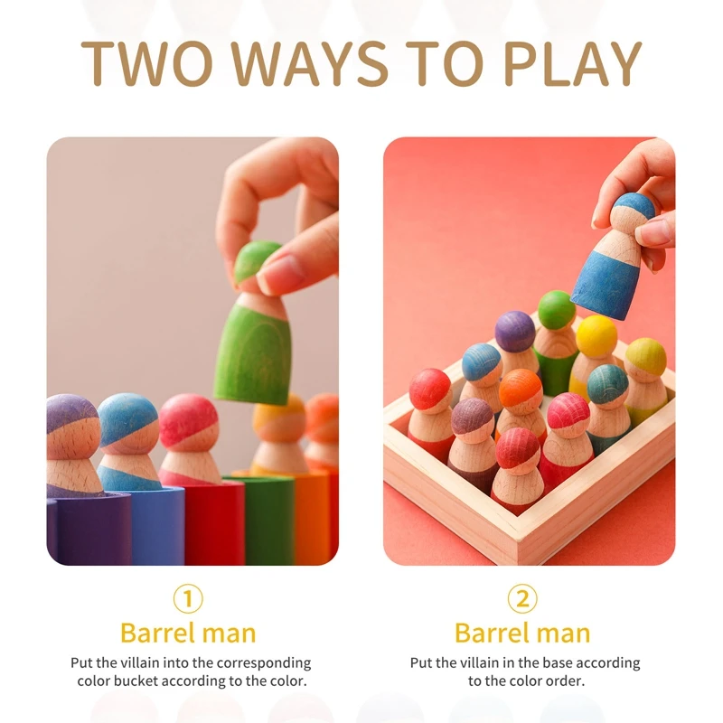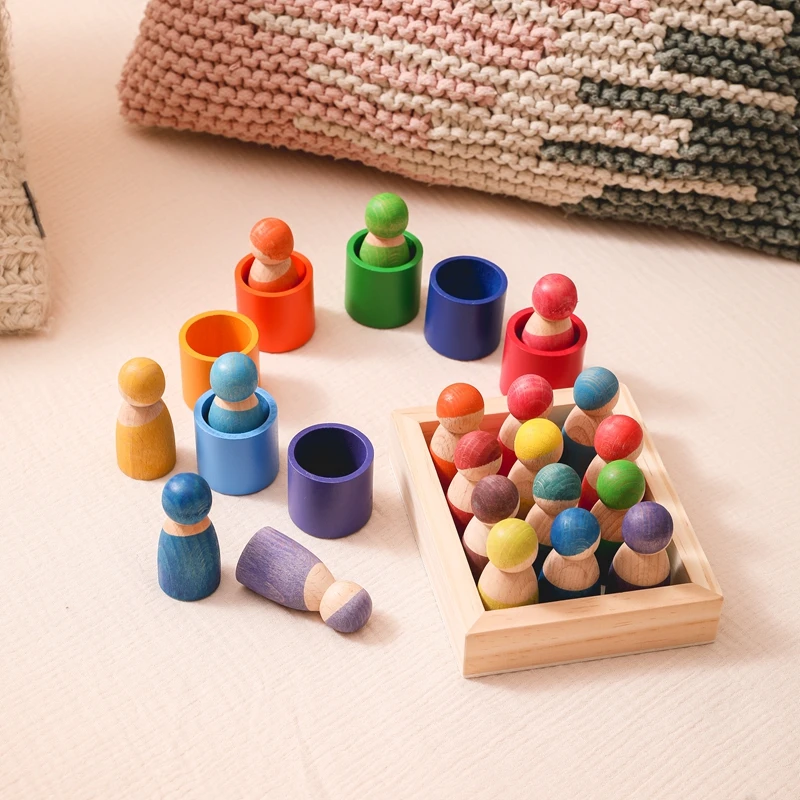 1Set Kids Wooden Rainbow Blocks Doll Montessori Educational Color Cognitive Ability Toy For Children Stacking Blocks Baby Gift