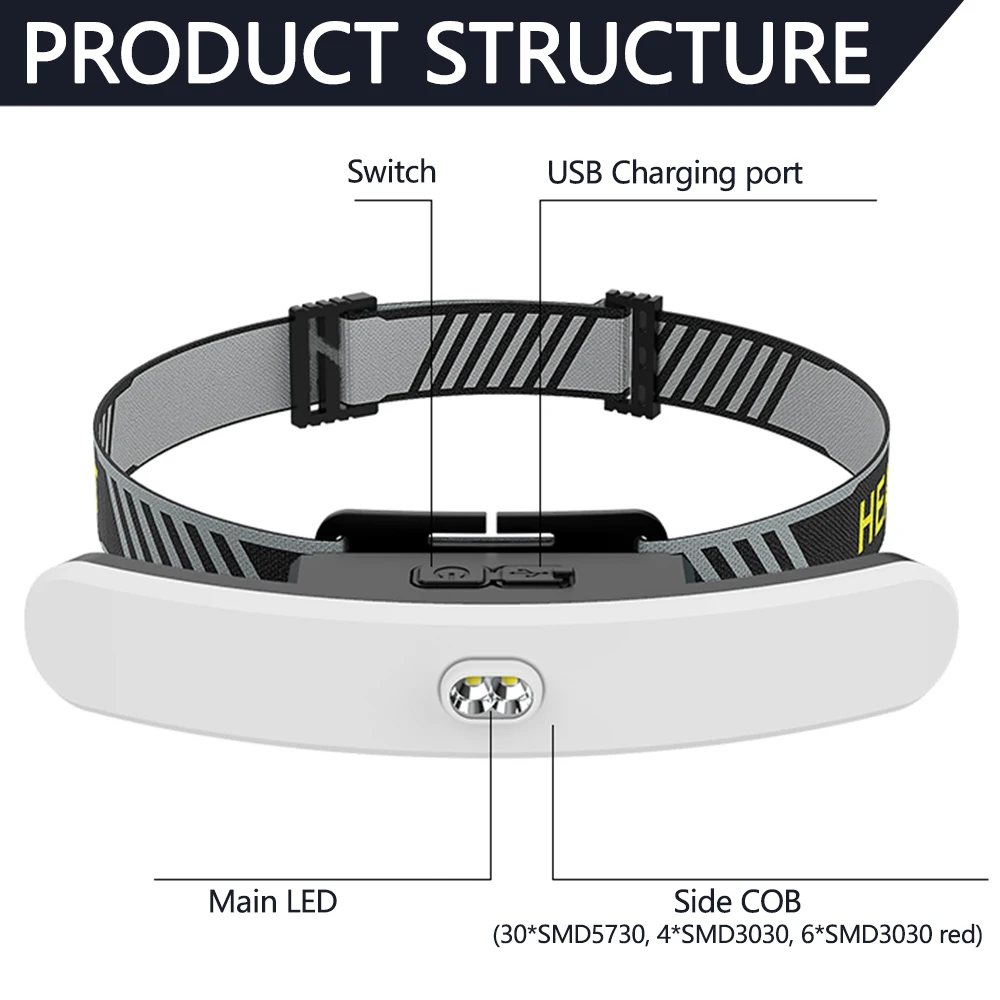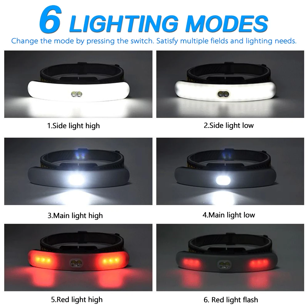 Режимы: COB белый сильный светильник-COB белый слабый светильник-светодиодный сильный светильник-светодиодный слабый светильник-COB красный светильник мигающий