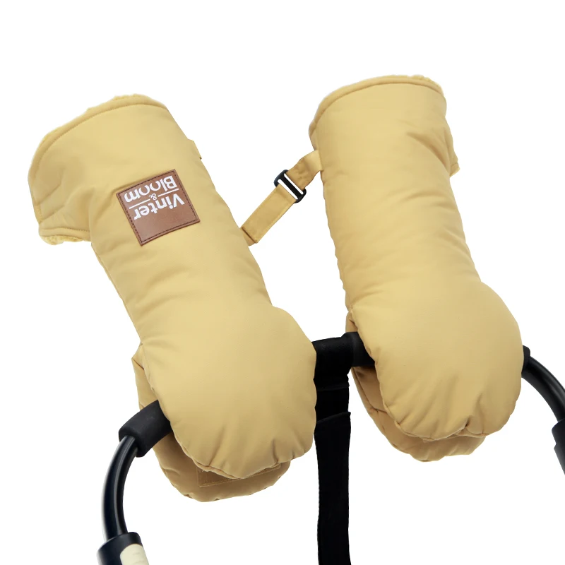 Перчатки имеют липучку, которую можно зафиксировать на ручке коляски