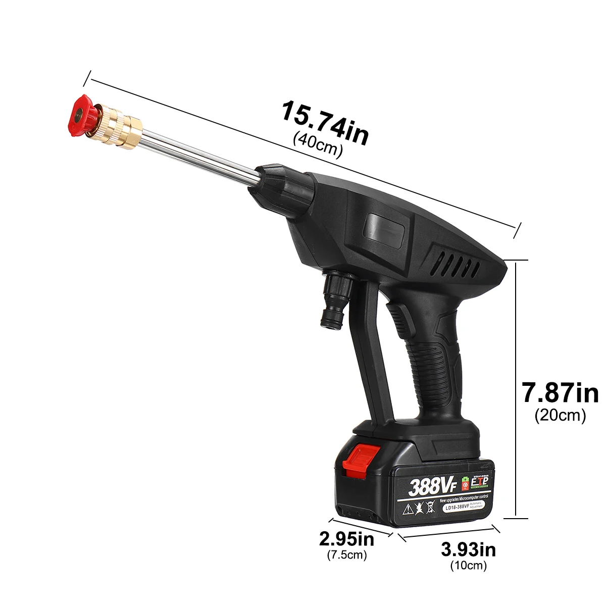 Q и A В1: почему машинная стиральная машина не запускается после включения выключателя A1: возможно, аккумулятор разрядился, пожалуйста, заряжайте его В2: почему нет воды после начала мытья автомобиля A2: Убедитесь, что водопровод Согнут и дренаж не является гладким; Нажмите на стиральную машину более 10 секунд, а затем подождите, пока вода будет всасываться в стиральную машину автомобиля В3: застенчивый-это давление воды настолько маленькое A3: давление воды размер сопла имеет определенные отношения с соплом, вы можете выбрать, чтобы заменить сопло; При использовании батареи, давление воды будет очень низким, пожалуйста, заряжайте. Примечание: 1. Замеры сделаны вручную, поэтому возможны 0,5-1 дюйм разницы в связи с тем, что измерения выполнены вручную. (1 дюйм = 2,54 см) 2. Цвет фактического товара может немного отличаться от изображения из-за различных компьютерных экранов, спасибо за понимание. 1 x машинная стиральная машина