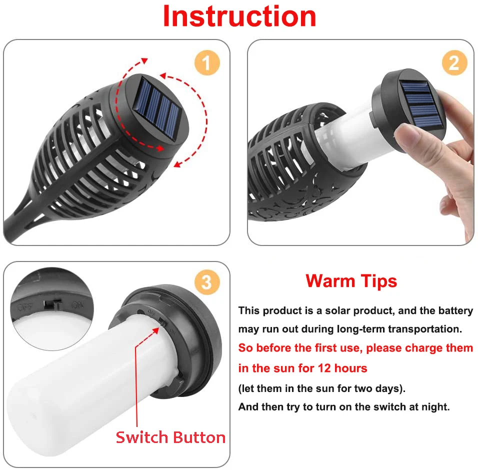 12 Светодиодный садовый светильник на солнечной батарее открытый Солнечный свет водонепроницаемый мерцающий факел пламя лужайка лампа для украшения сада