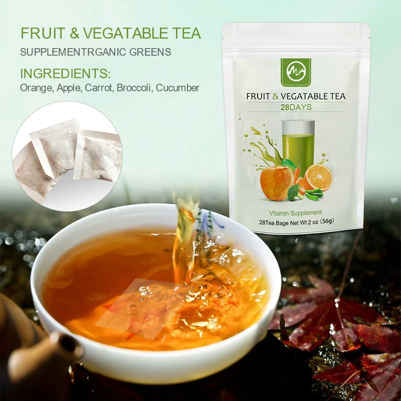 Фруктовый и овощной чай богат многими витаминами, белком, клетчаткой и другими ингредиентами. Это способствует пищеварению, питанию селезенки и желудка, очищению тепла и снятию тепла. Он может способствовать метаболизму тела, обладает анти-окислением, ускоряет перистальтику желудочно-кишечного тракта и способствует появлению жидкости в организме и утолению жажды. Длительное питье может облегчить сухость, улучшить запор, иметь антиоксидантные и освежающие эффекты.