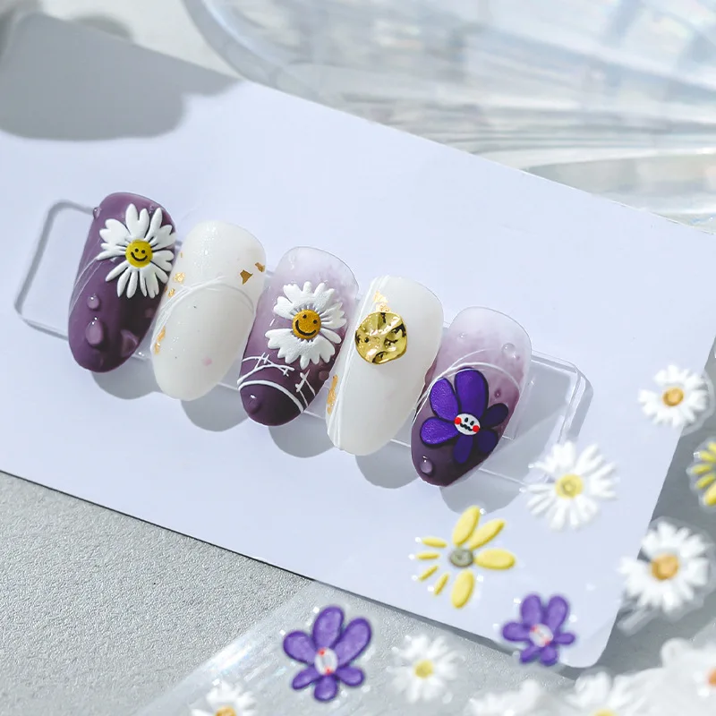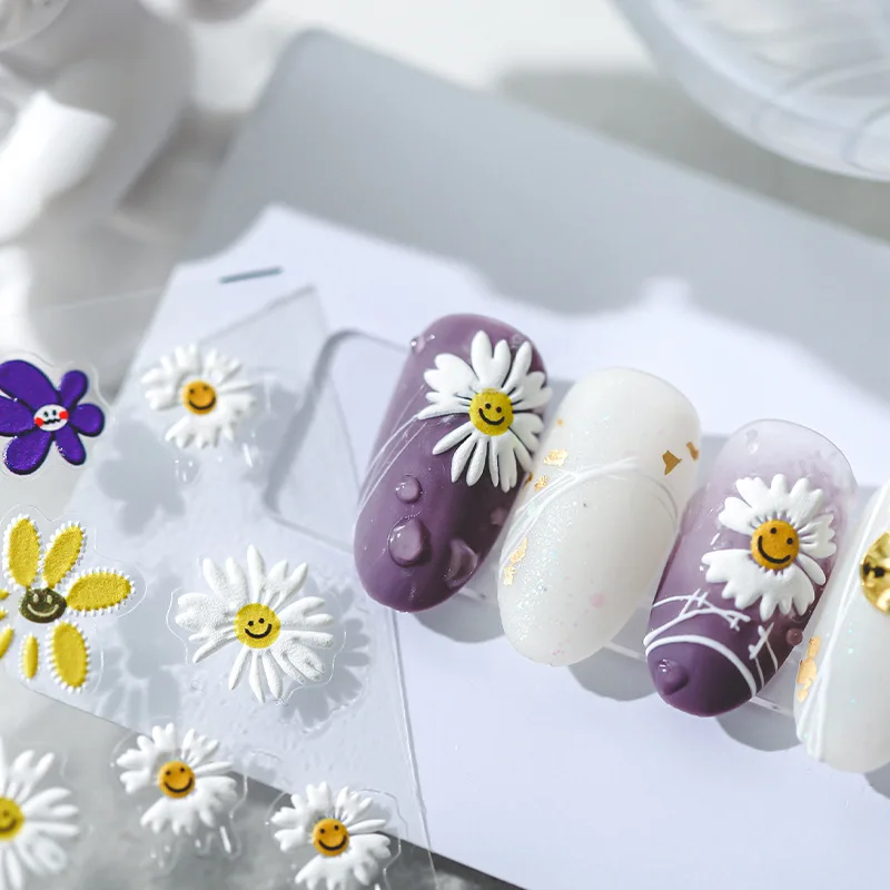 Новинка 2022, 5D тисненые наклейки для ногтей, корейский дизайн маргариток, наклейки для дизайна ногтей, цветы, смайлики, украшение для маникюра, самоклеющиеся слайдеры