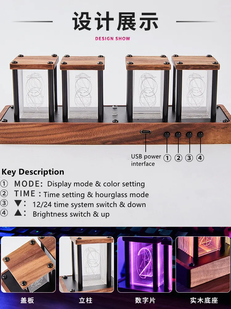 Отзывы о Настольные часы в стиле киберпанк светящиеся темноте с RGB-подсветкой деревянной