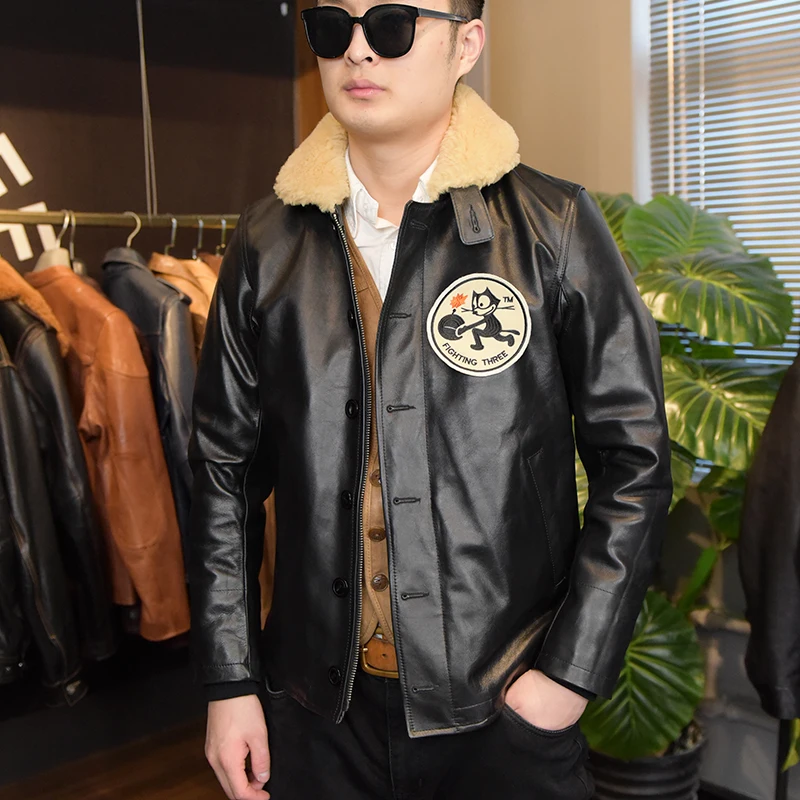 Отзывы о 2022 Черная мужская куртка из натуральной кожи в Военном Стиле большой размер 3XL