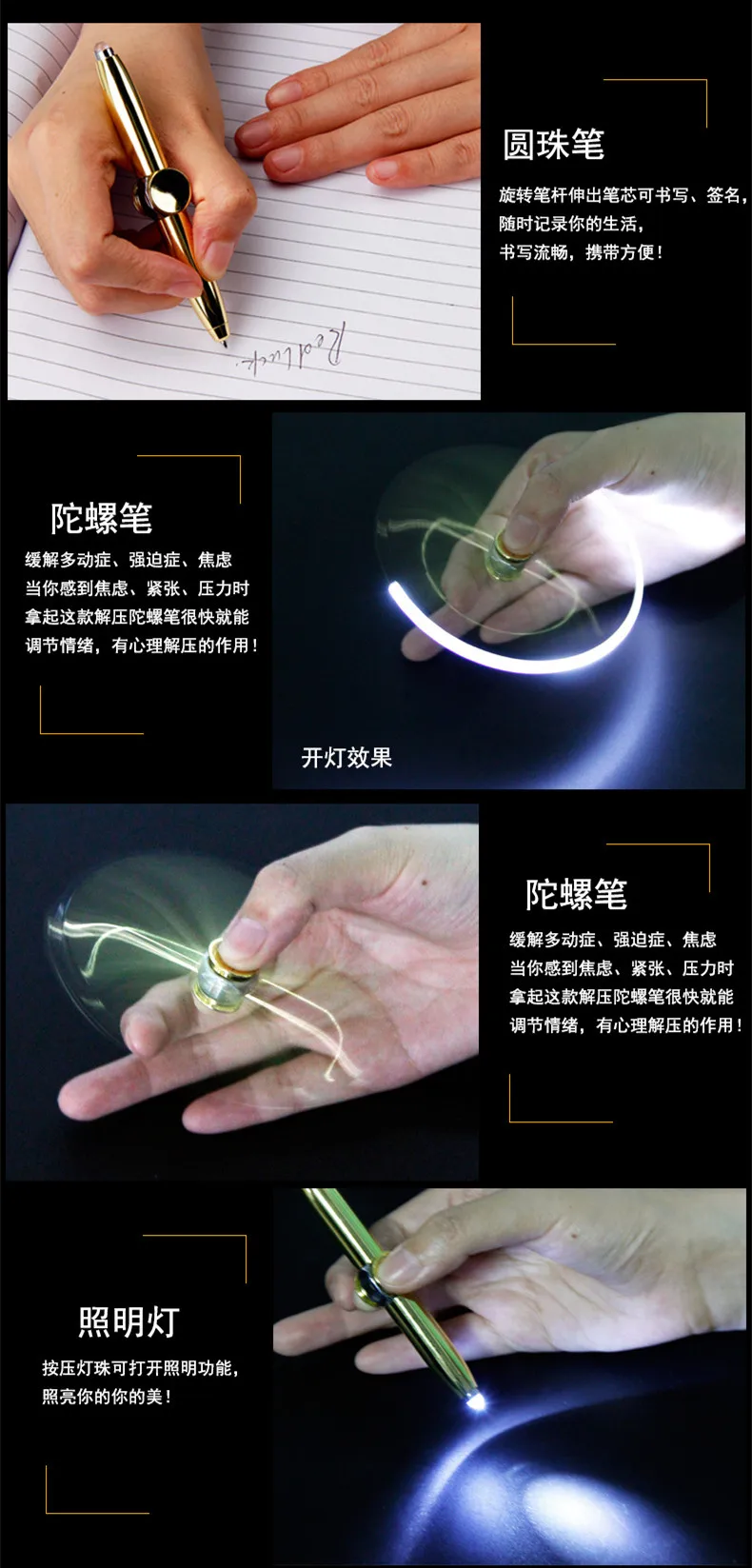 Отзывы о Светодиодная ручка-Спиннер шариковая ручка Спиннер ручная подсветильник EDC