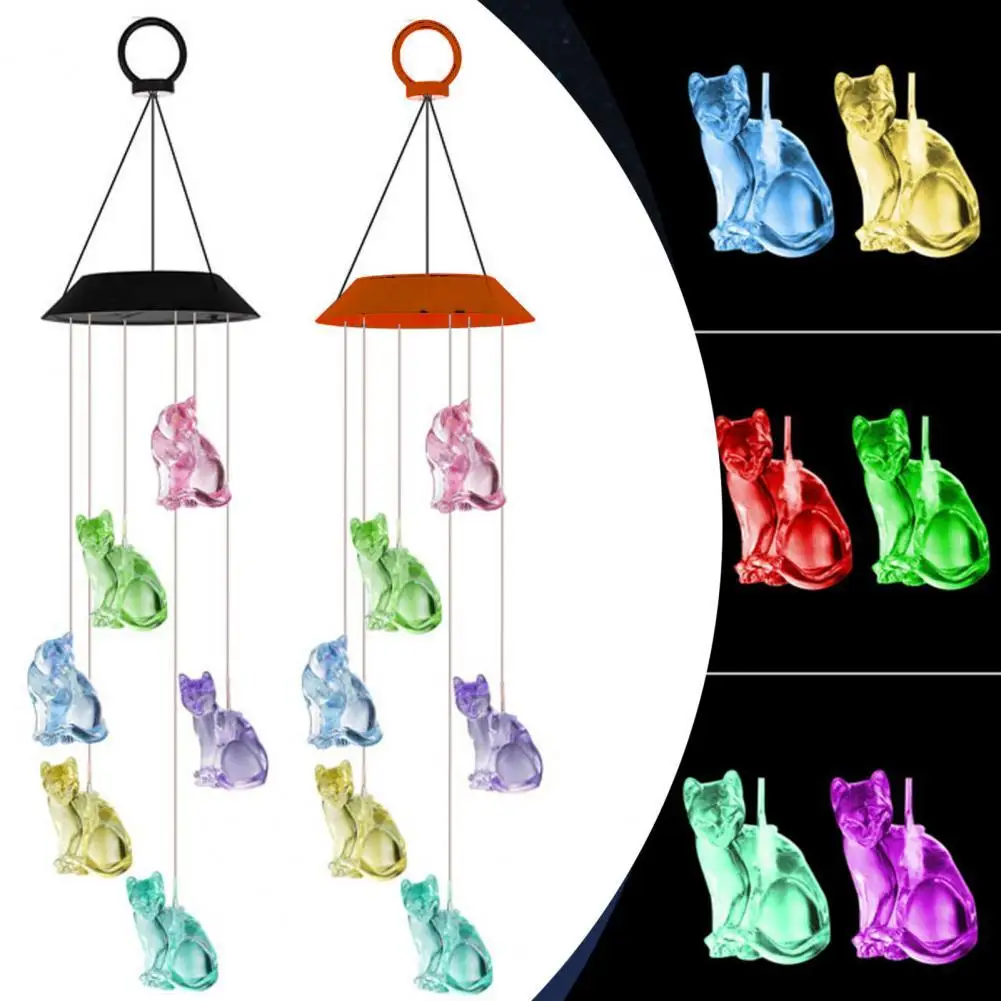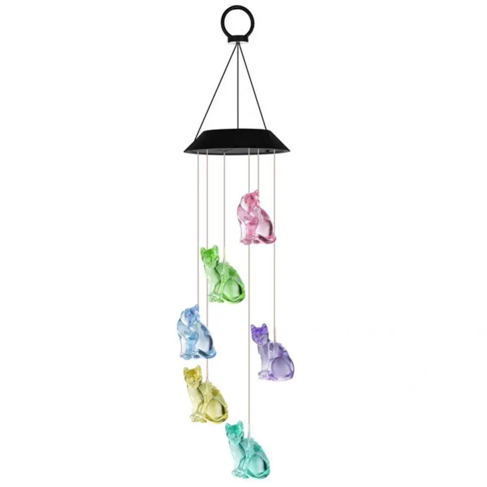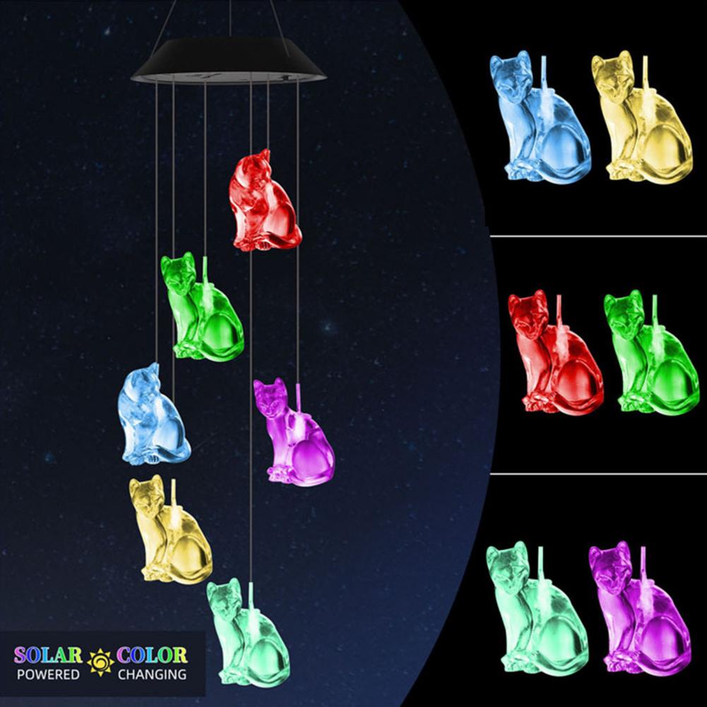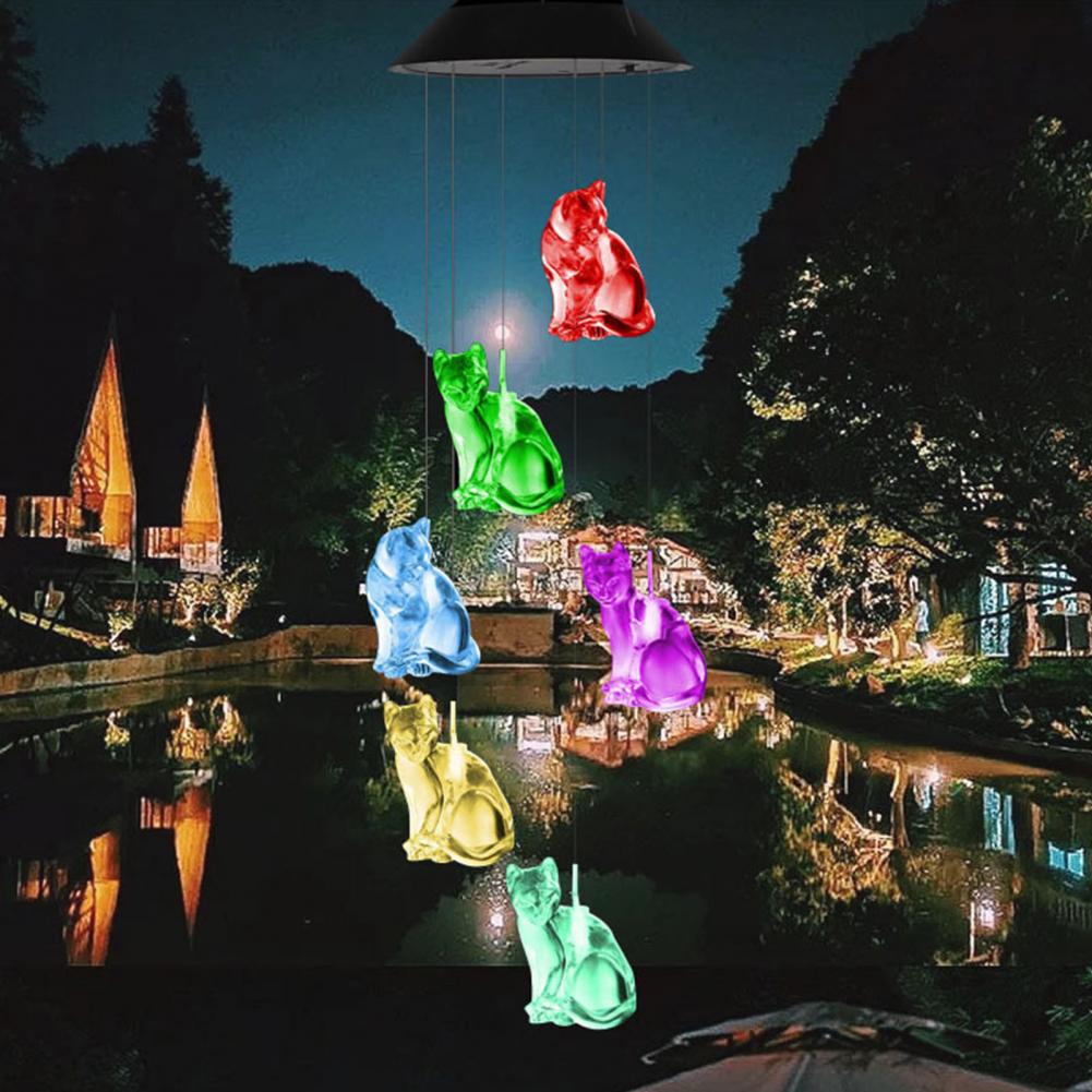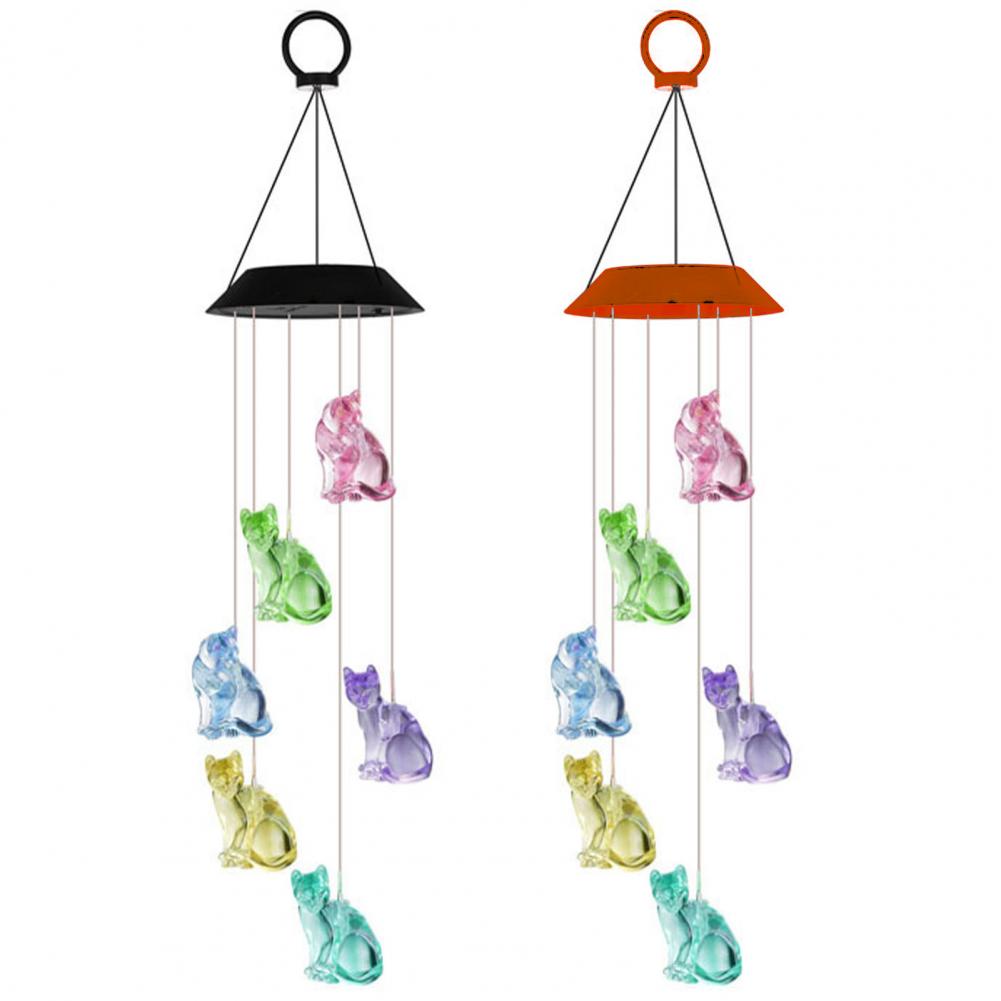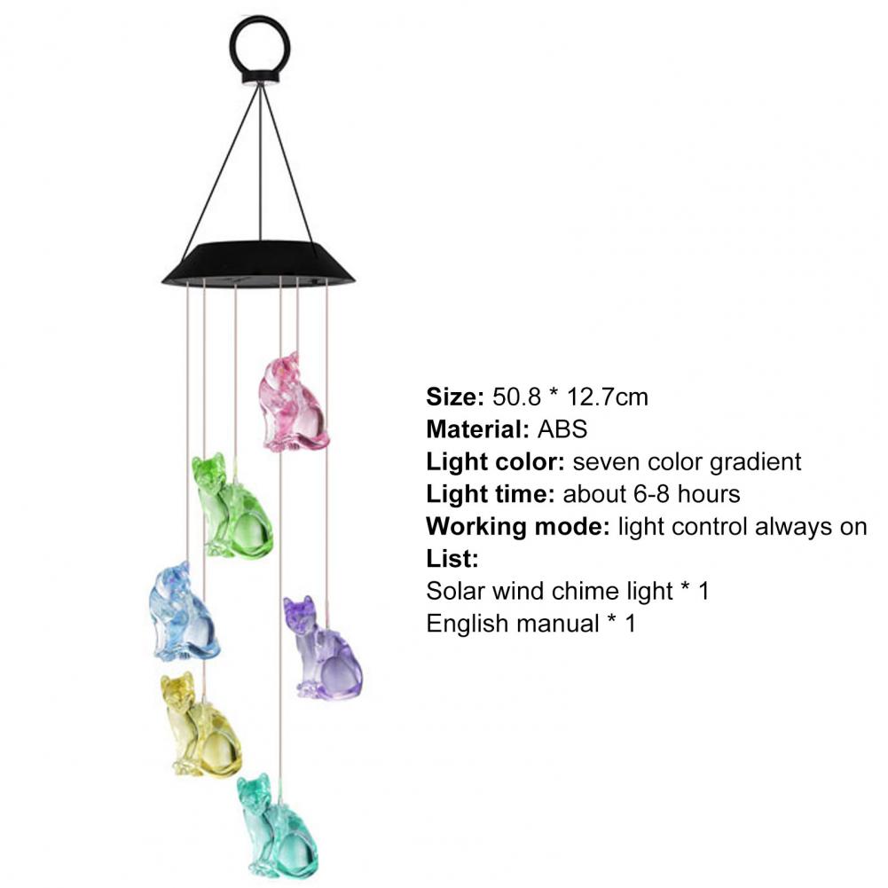 В ночное время этот изменяющийся цвет колокольчика ветра, состоящий из 6cat-образный солнечный светильник s излучает 7 различных цветов светильник, чтобы создать замечательную атмосферу на открытом воздухе.