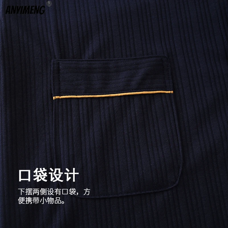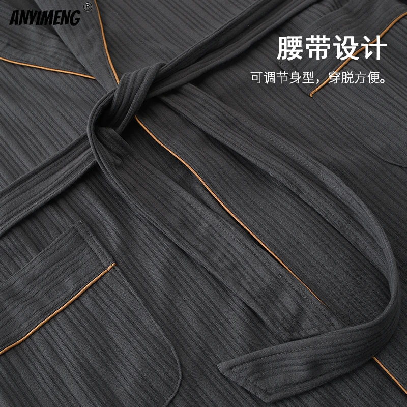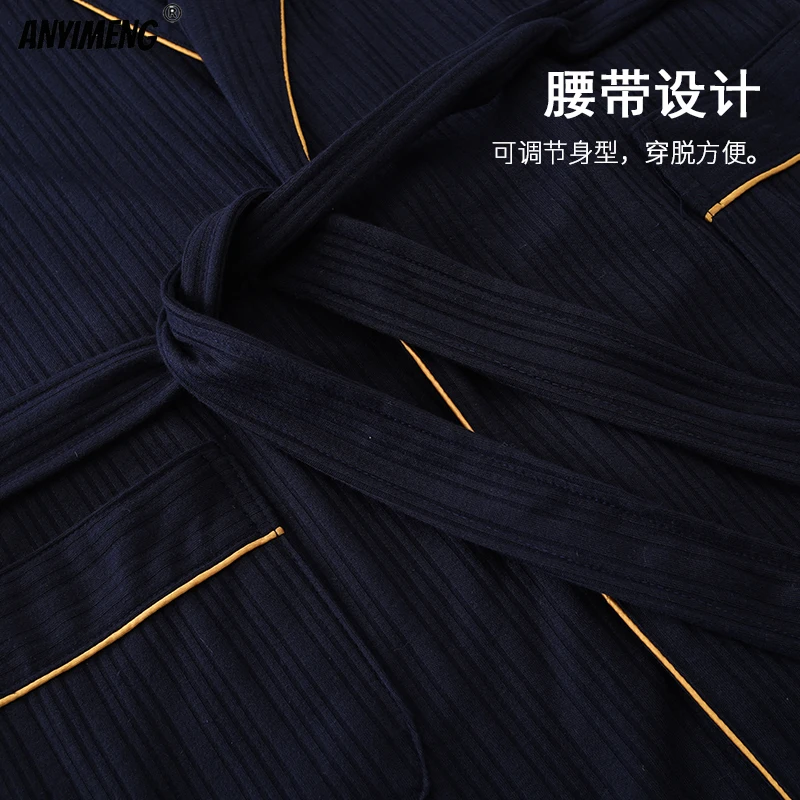 Темно-синие роскошные мужские халаты, пижамный комплект, большой размер 3xl 4xl, халат для отдыха + штаны с длинными рукавами, весенне-осенняя мягкая хлопковая одежда для сна