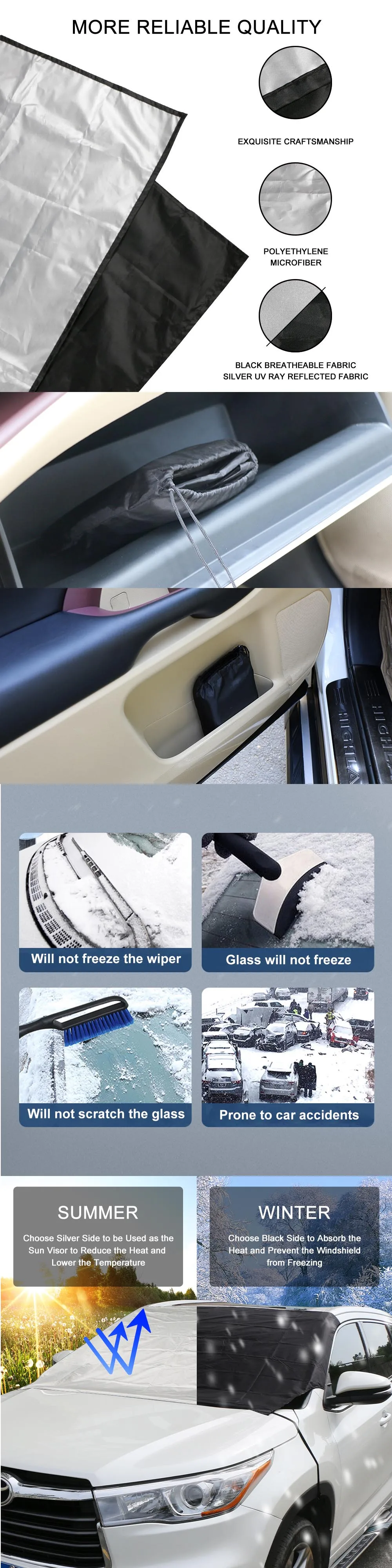 Подходит для большинства автомобилей, фургонов и внедорожников. Ветровое стекло автомобиля легко складывается для хранения в багажнике или на задних сидениях вашего автомобиля.