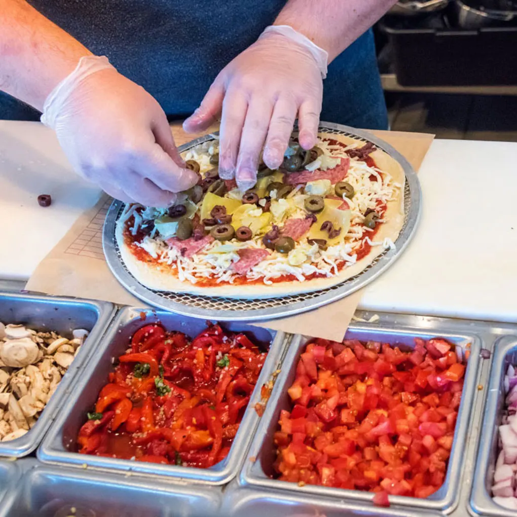 Анодированная поверхность обеспечивает хорошую устойчивость к коррозии для выпечки пиццы.