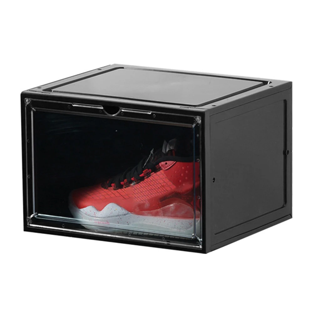 【Штабелируемая и прозрачная дверца 】пряжка в нижней части обувной коробки интегрирована с корпусом коробки и может быть плотно соединена с канавкой на верхней части продукта, чтобы сделать коробку обуви более стабильной. Прозрачная Магнитная Боковая дверь не только обеспечивает четкую функцию отображения, но и защищает вашу спортивную обувь от пыли и влаги. Когда свет горит, ваша драгоценная коллекция, несомненно, станет изюминкой комнаты.