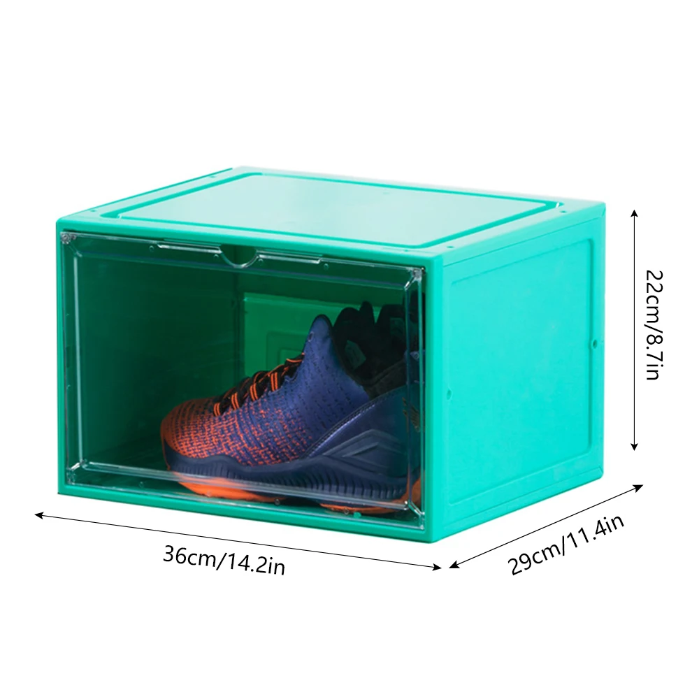 【Large Capacity】The размер данного коробка для хранения является 14,2x11,4x8,7 дюйм (ов), что означает, что он может держать американский размер 14 обуви. Вы можете использовать его не только для хранения кроссовок, но и сапог, высоких каблуков, мультяшных персонажей и других частных коллекций. Очень прозрачная панель, хорошо видна, легче найти обувь.