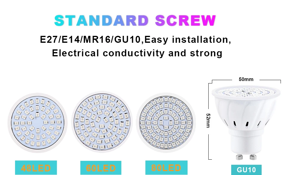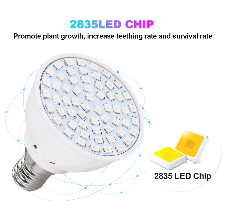 Тип: Светодиодный лампа в форме растенияНум: 4 шт.Светодиодный чип: 48 Светодиодный s , 60 Светодиодный s , 90 светодиодный sНапряжение: 220230 В переменного тока, 240 В все в порядкеМодель светодиодного чипа: SMD 2835Цветовая температура: полный спектр светильник для выращиванияМатериал корпуса: пластикТип цоколя: E27, E14 , GU10 , MR16Способствует росту комнатных растений, светильник и удобные лампы выделяют большую энергиюПожалуйста, прочитайте следующую информацию
