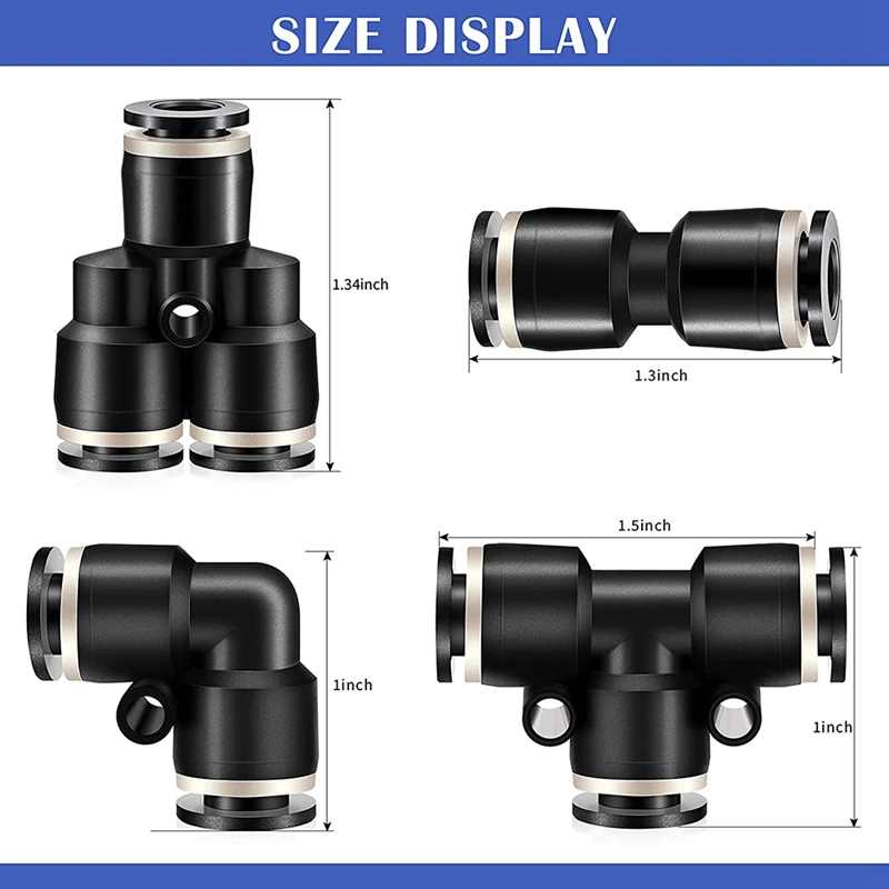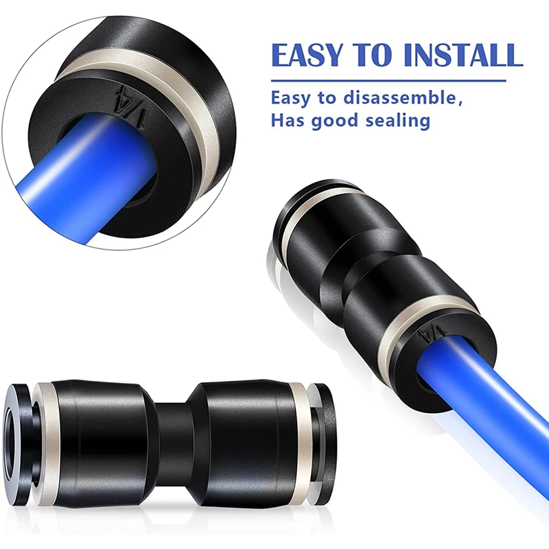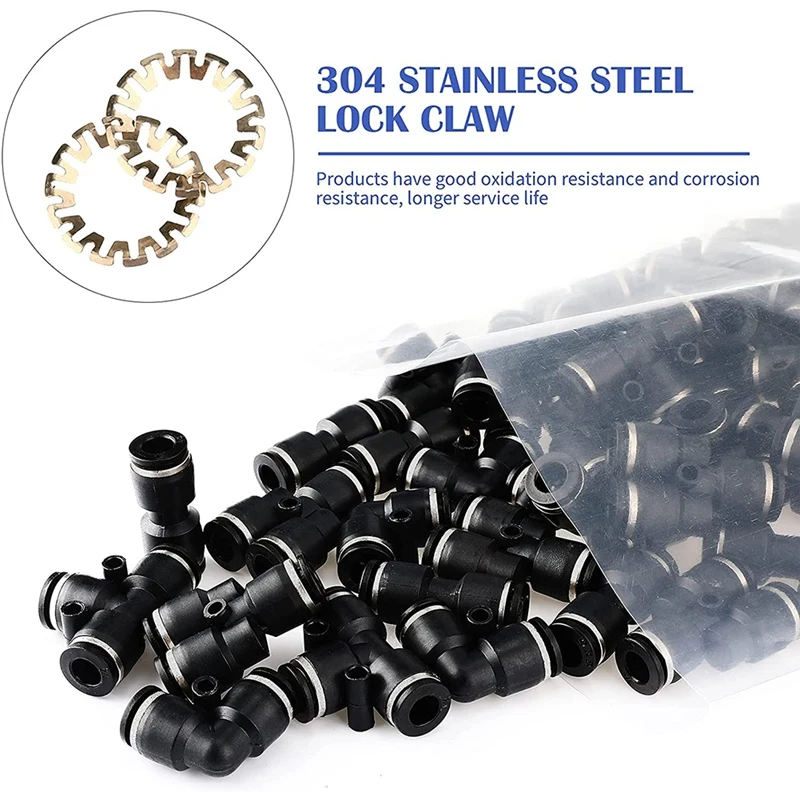Надежный пластик: пневматические фитинги push-connect изготовлены из надежного пластикового материала, который не легко отпасть после подключения; Уплотнительные элементы имеют хорошую производительность герметизации и не легко протекает; пневматические детали имеют высокую прочность, которые не легко лопаются и обеспечивают длительный срок службы.