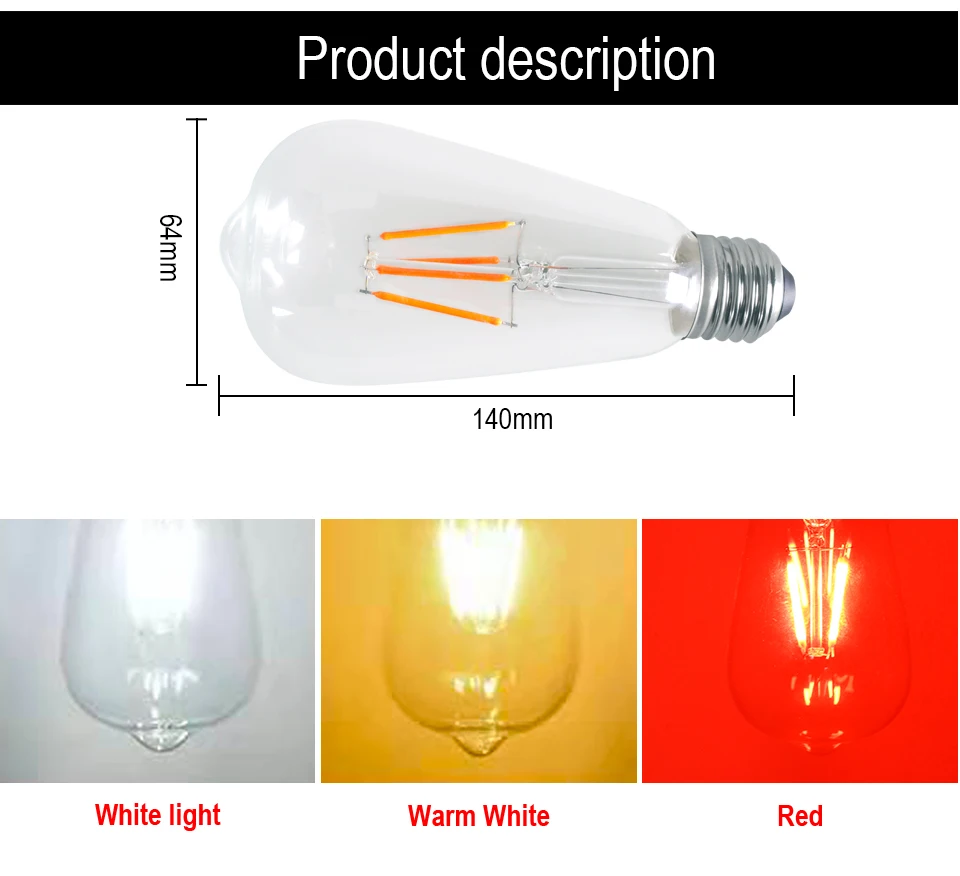 Отзывы о Винтажная Светодиодная лампа Эдисона ST64 E27 2 Вт 4 6 8 AC 220 В прозрачная стеклянная