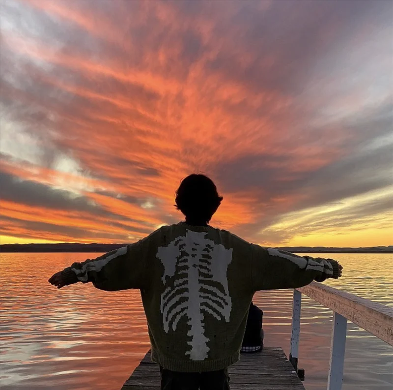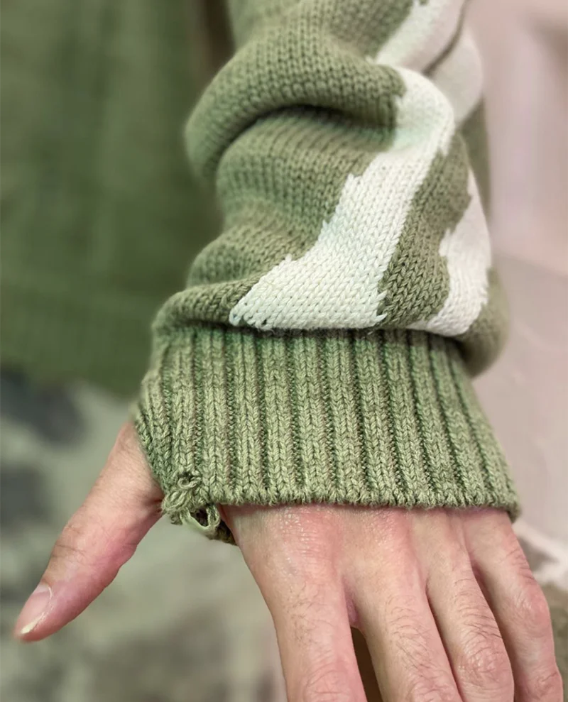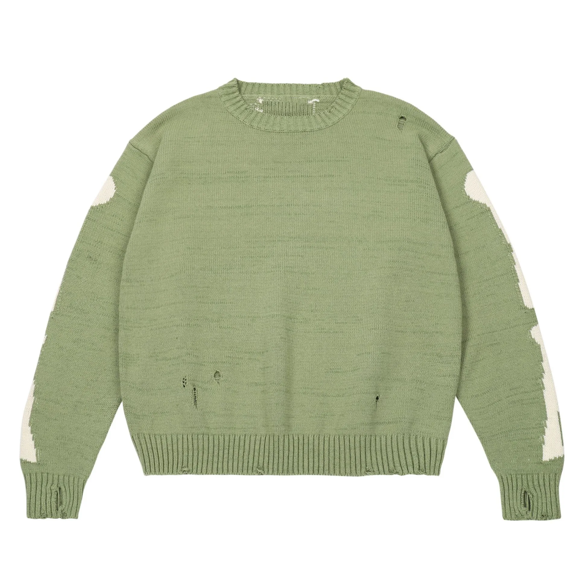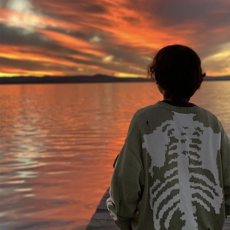 Отзывы о Мужской Свитер оверсайз Зеленый свободный винтажный свитер с принтом скелета и