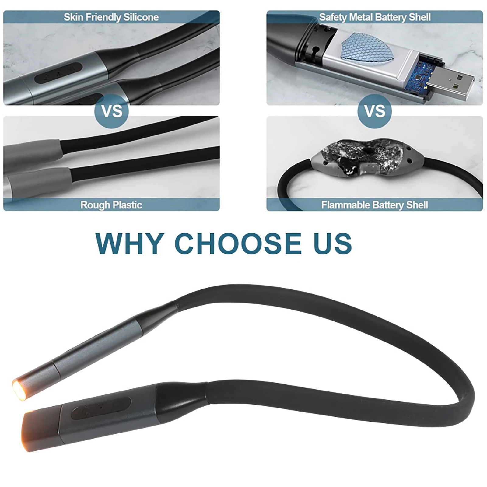 Характеристика:Шейный светильник для чтения-2 гибкие мягкие силиконовые ручки, удобная одежда, для глаз, 8 Светодиодный светильник для чтения книг в кровати, 3 цвета, перезаряжаемый, идеально подходит для чтения, вязания, кемпинга, ремонта, бегаХарактеристика:Многосценарные случаи использования: его можно повесить на грудь, чтобы прочитать книгу, использовать в качестве бегущего светильник ночью, также можно использовать как небольшую настольную лампу, можно повесить как палатку для кемпинга.Изысканный корпус из алюминиевого сплава + приятный для кожи силиконовый шланг, Универсальная форма, простой стиль без винта в корпусе;Освещение 1600K-5500K-2800K, трехцветное освещение регулируется, и яркость постепенно плавное затемнение;8 супер яркий светодиодный индикатор с мощностью 1 Вт.