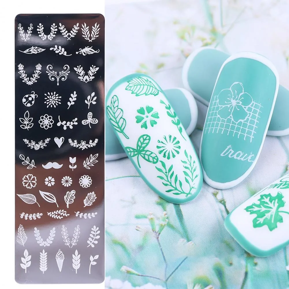 Пластина для стемпинга для нейл-арта, прозрачный гравированный лист, цветочный принт, нержавеющая сталь, сделай сам, маникюрный шаблон, инструмент для ногтей для красоты