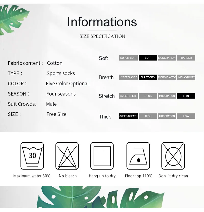 * Размер: Свободный размер (35-48CN)* Цвет: 5 цветов* Включает в себя: 5 шт. носков* Посылка: Opp сумка
