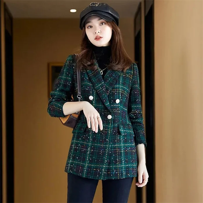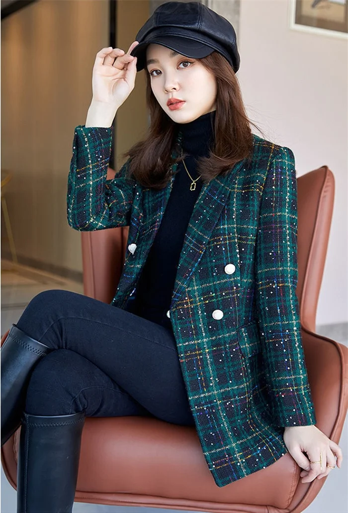 Отзывы о Высококачественная твидовая куртка женский шерстяной Блейзер двубортный