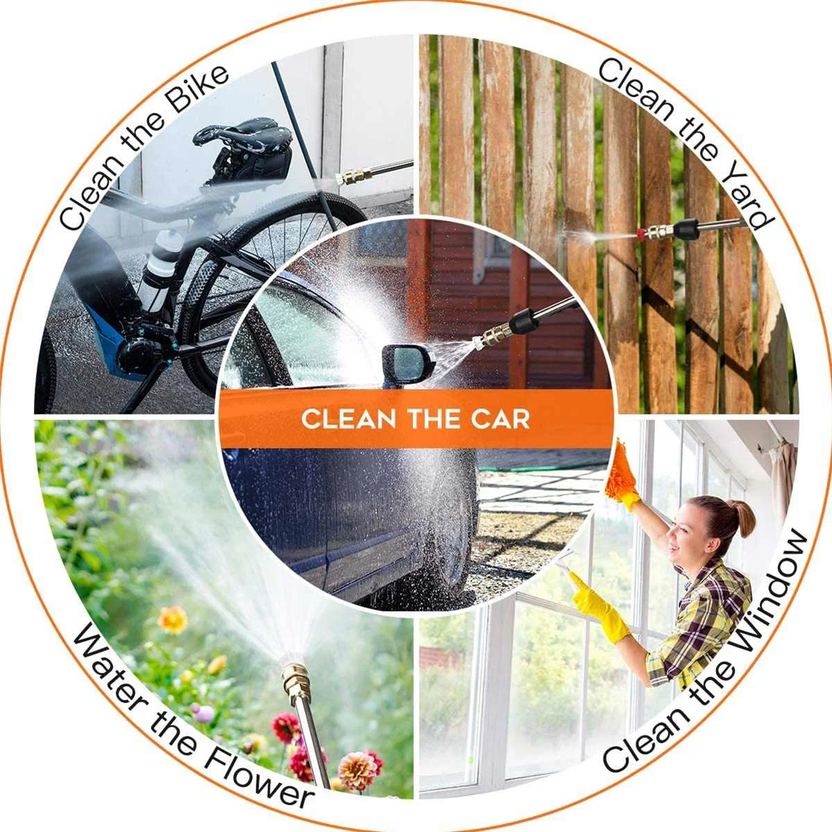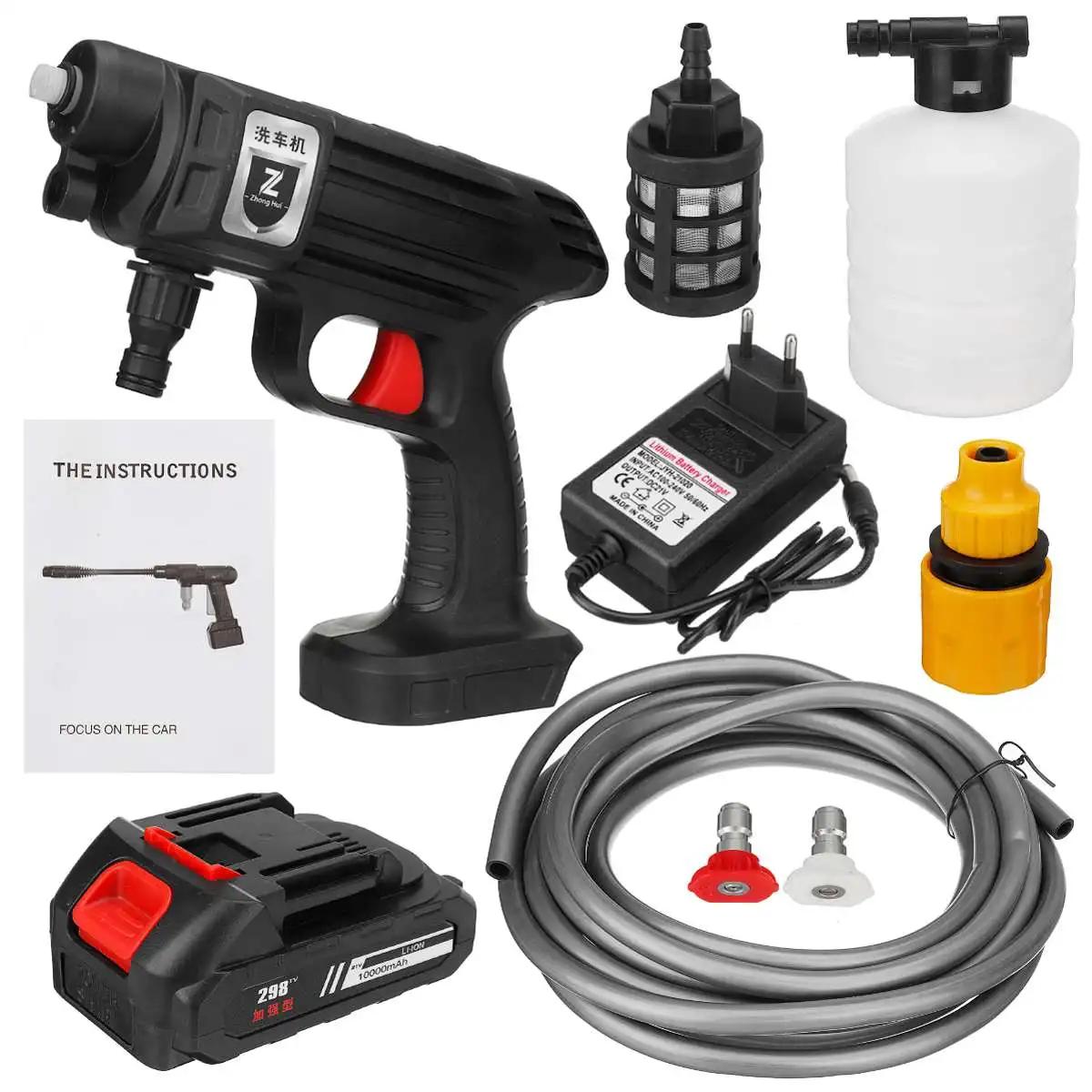Посылка: 1 x автомобильная мойка 1 х 5 м Водопровод 1 х пенопласт Металлический фильтр-1 шт. 1 х соединитель смесителя 1 х разъем 2 х головка для воды 1/2 x батарея Зарядное устройство-1 шт. 1 х Руководство