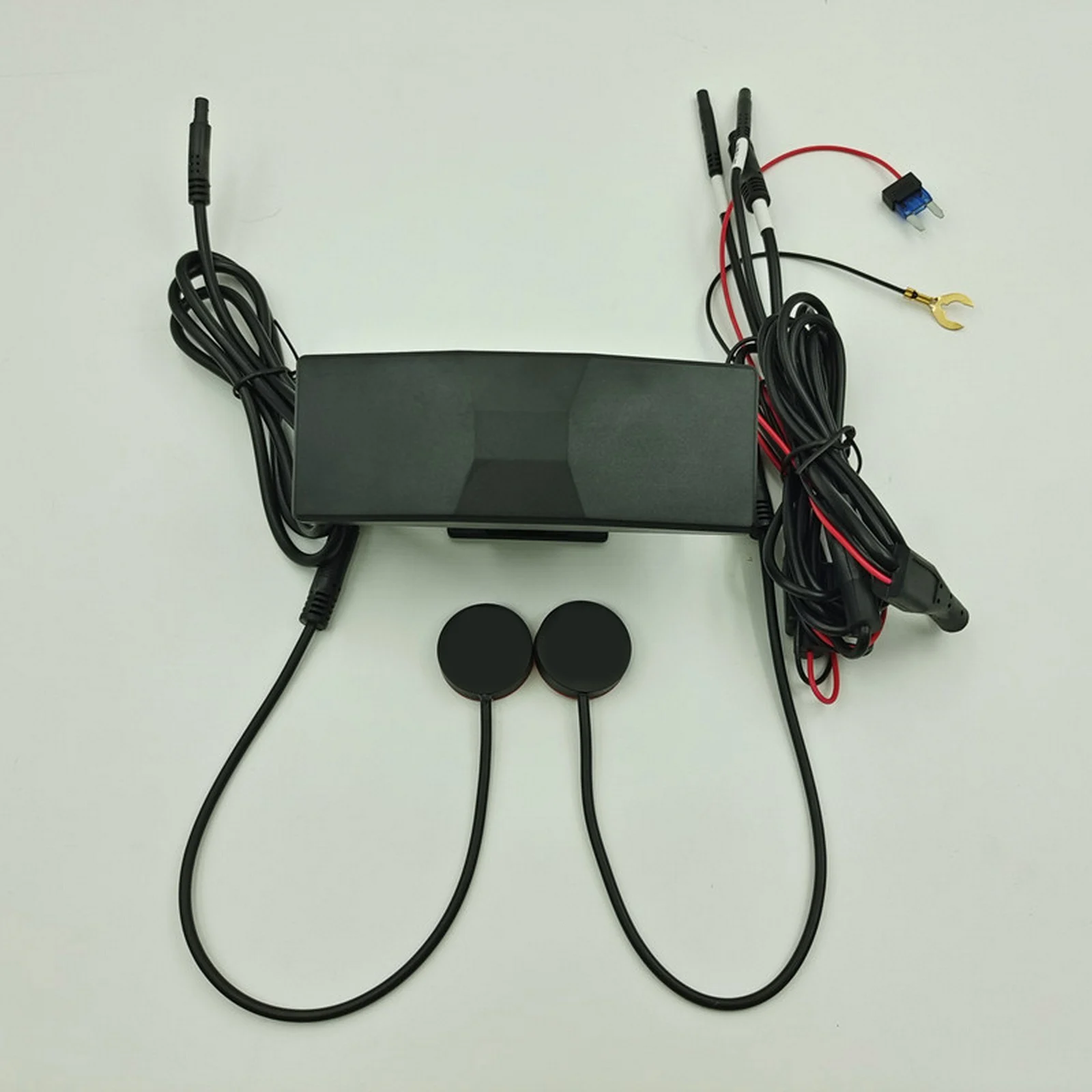 Система обнаружения слепых зон мотоцикла. Продукт состоит из одного микроволнового радиолокационного датчика 24 ГГц, двух индикаторов, одного монтажного кронштейна и соединительного жгута.