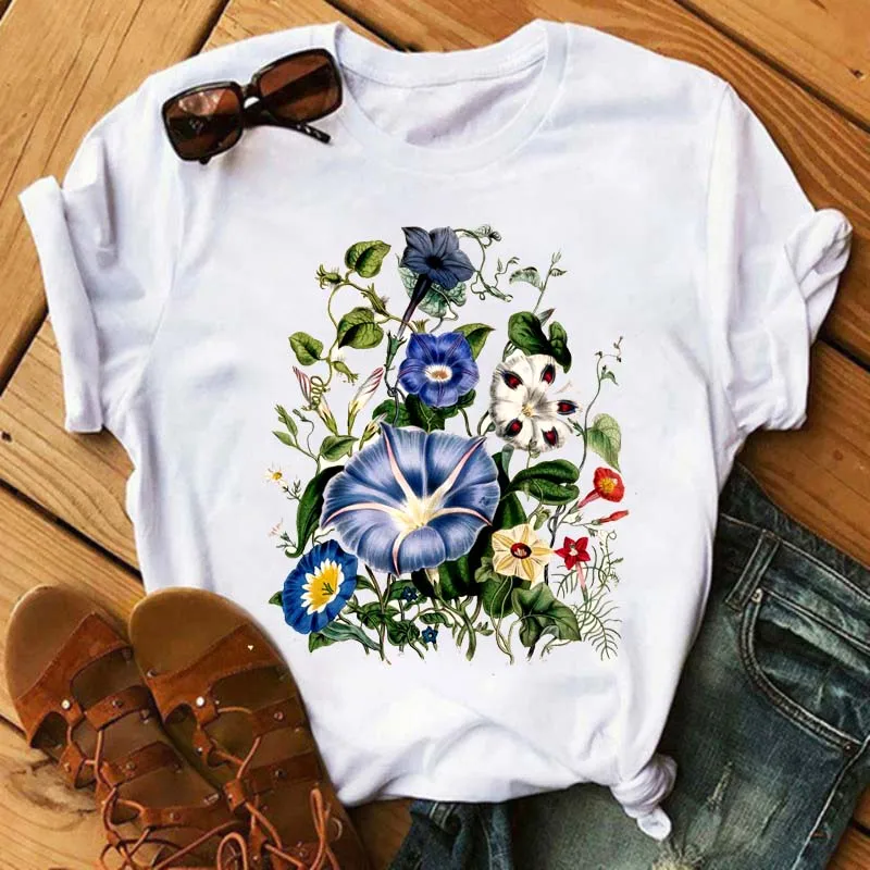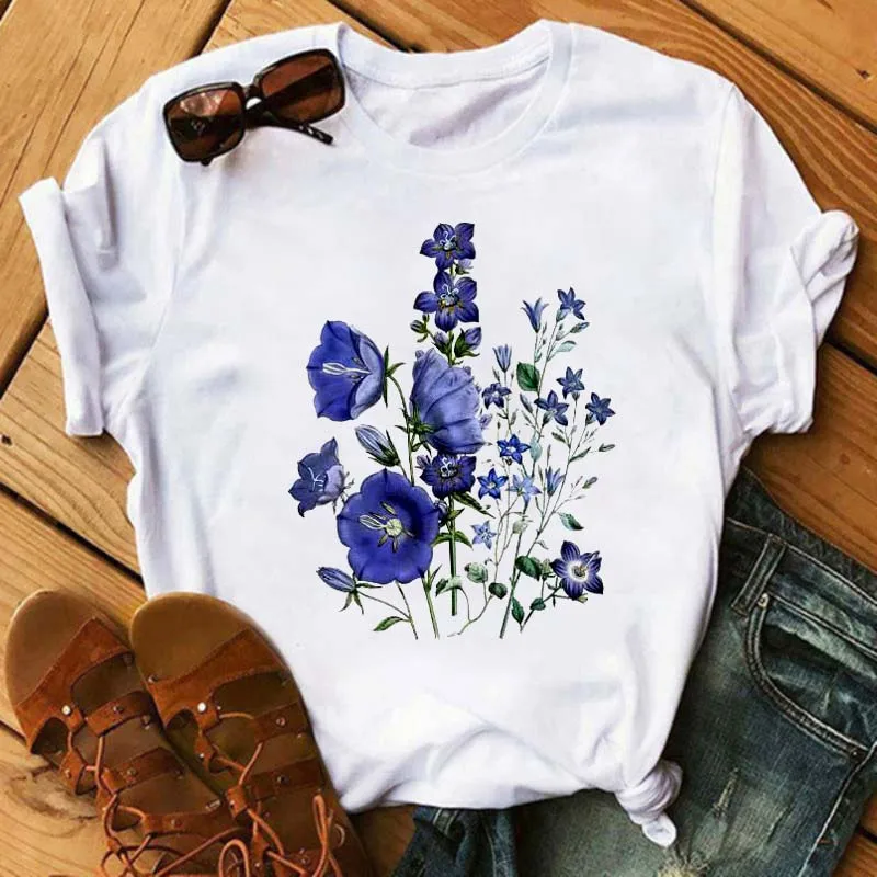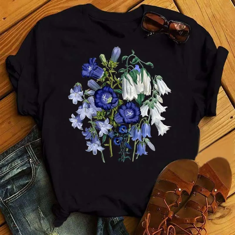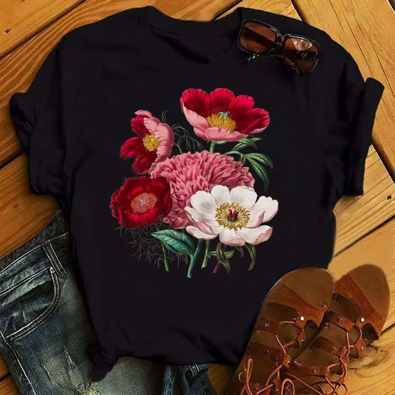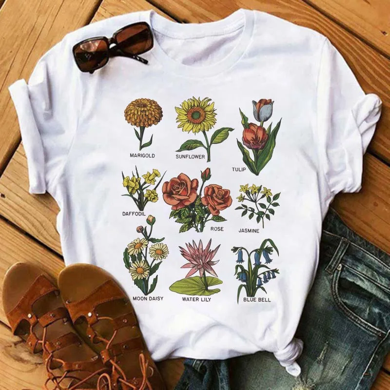 Отзывы о Женская футболка с коротким рукавом и цветочным принтом в стиле Харадзюку -