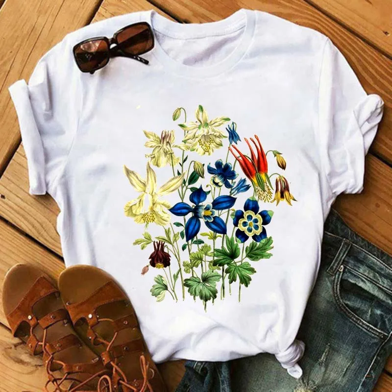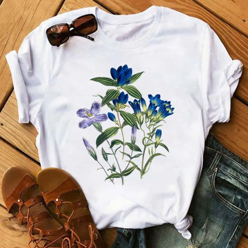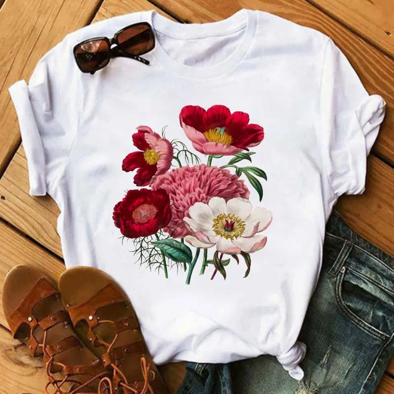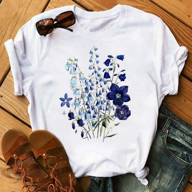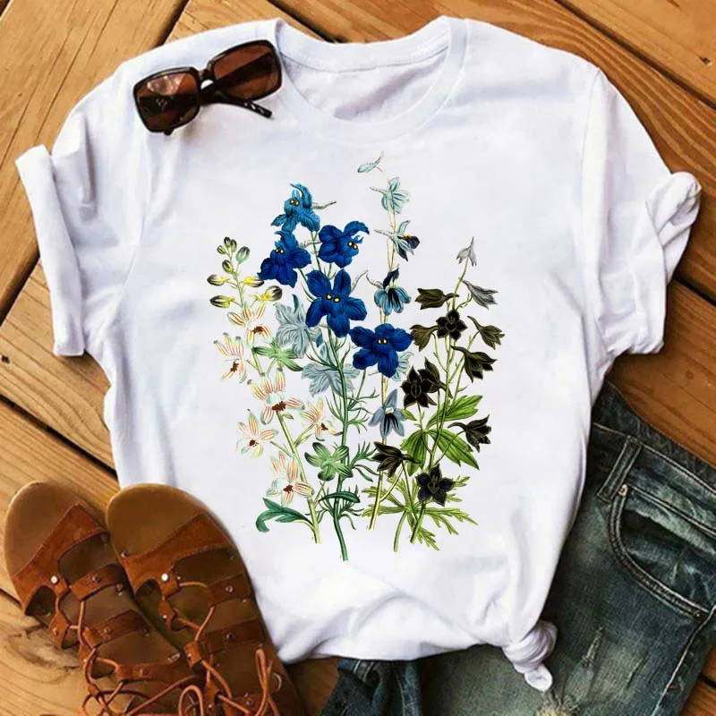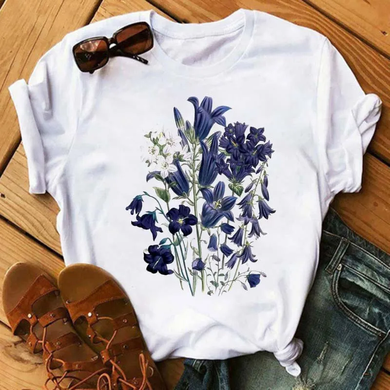 Отзывы о Женская футболка с коротким рукавом и цветочным принтом в стиле Харадзюку -