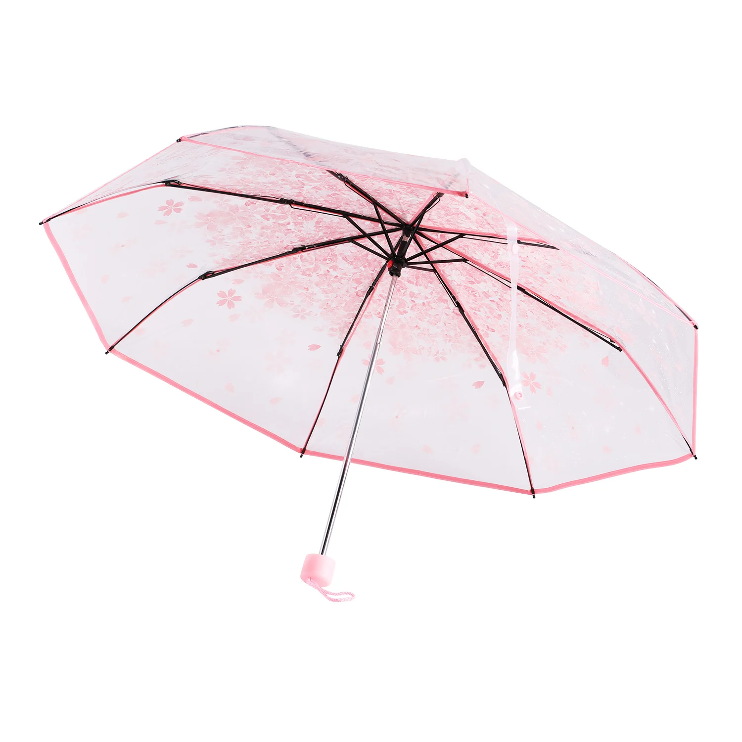 Отзывы о Компактный складной зонт-Вишня прозрачный зонт три складных 8 ребристых