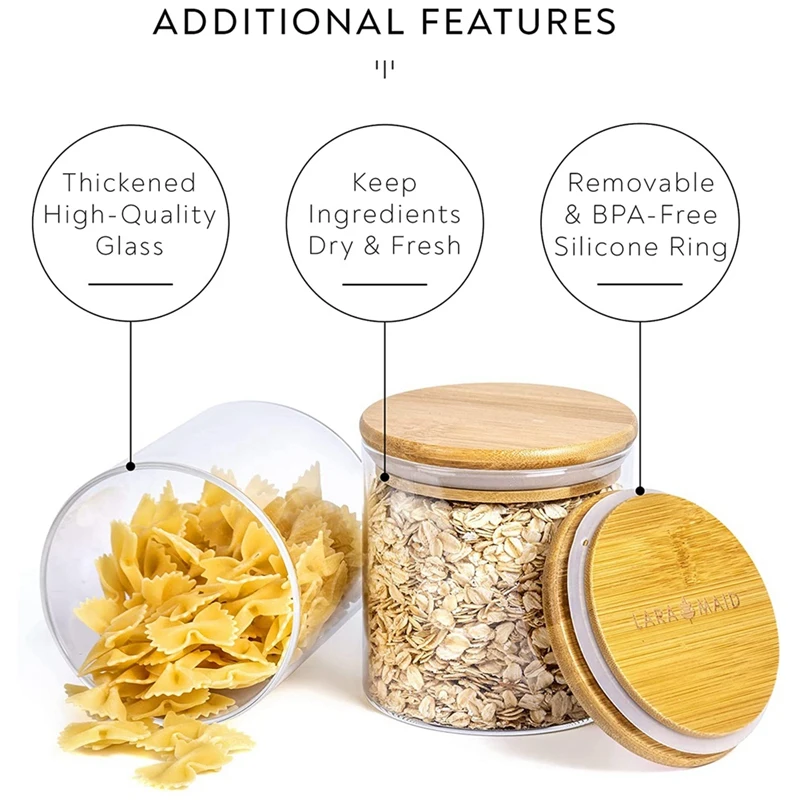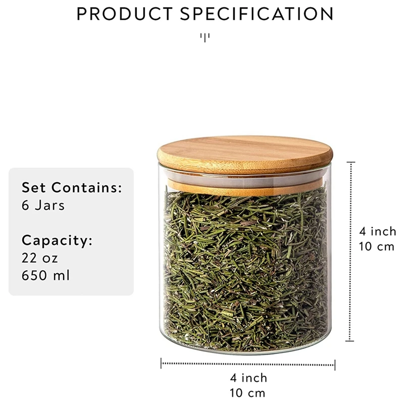 Акция! 22 унции 6 пакетов стеклянный набор банок, круглые баночки для кладовки с крышки из бамбука, контейнер для хранения еды канистры для дома, кухни