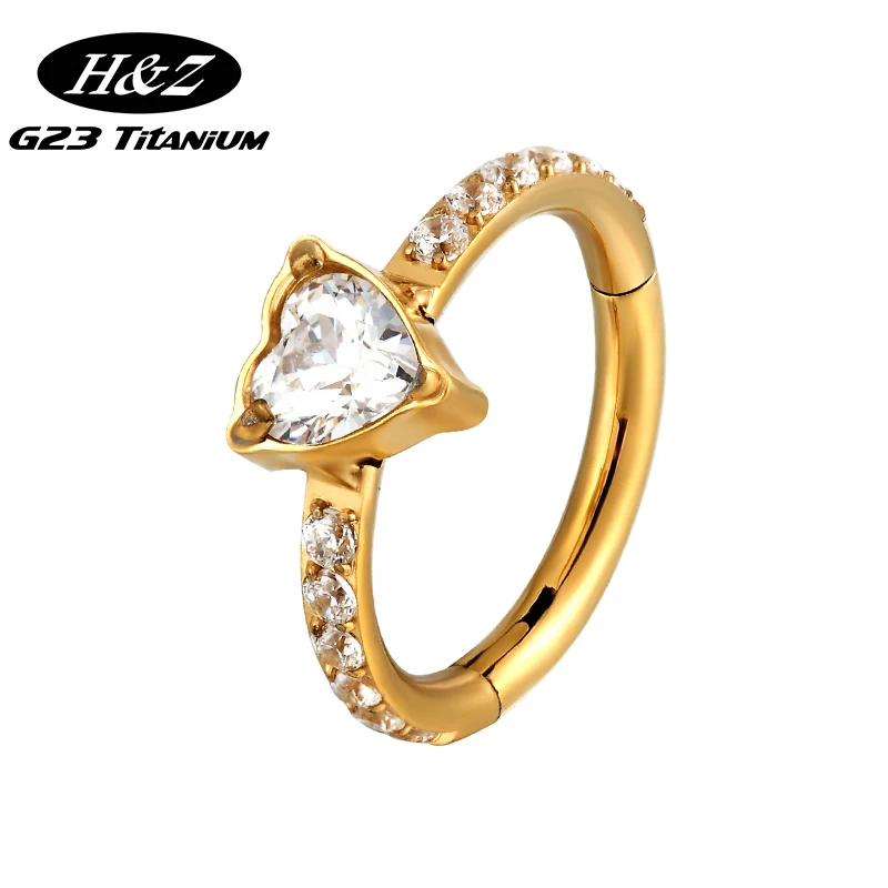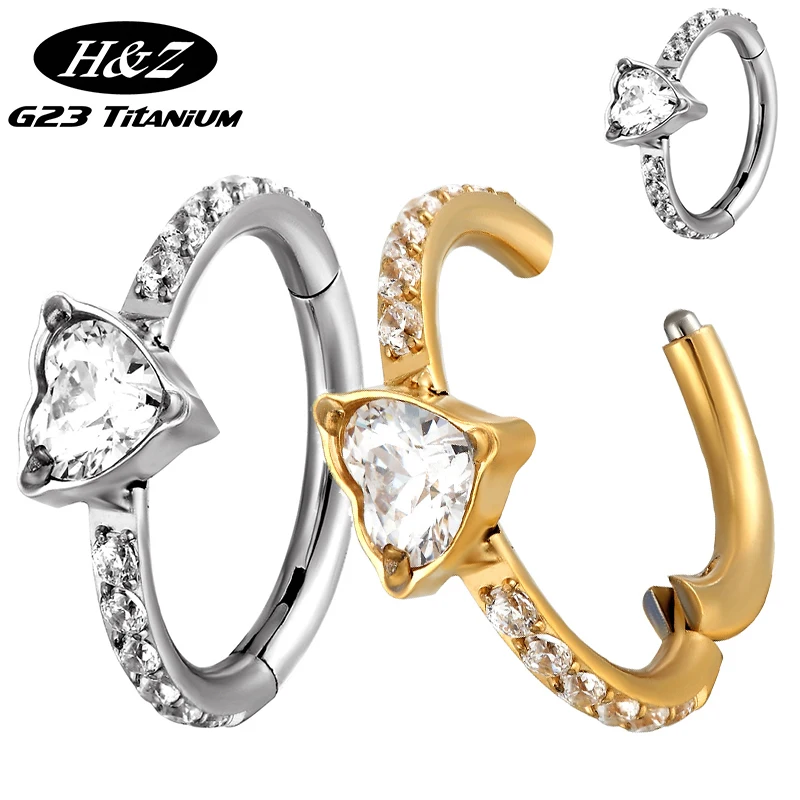 F136 титановые серьги для пирсинга 16 г Сердце Циркон нос кликер шарнирное кольцо Daith Conch Tragus Rook перегородка пирсинг тела ювелирные изделия