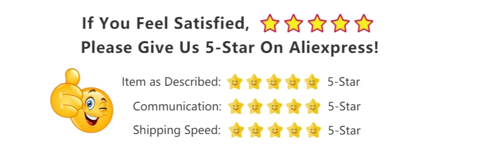 1. Если вы удовлетворены нашими продуктами и услугами, пожалуйста, оставьте положительный отзывы и 5 звезд.