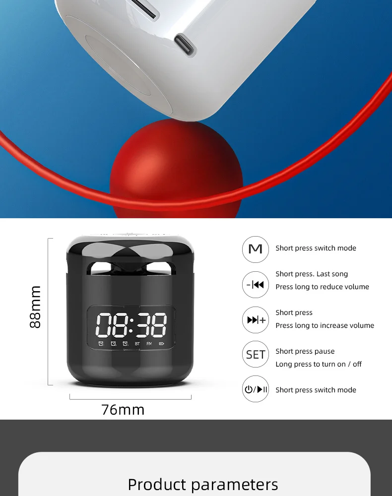 Отзывы о New Portable Wireless Bluetooth Speaker HiFi Sound Quality LED Night Light FM Radio Round Smart Electronic Alarm Clock Subwoofer |