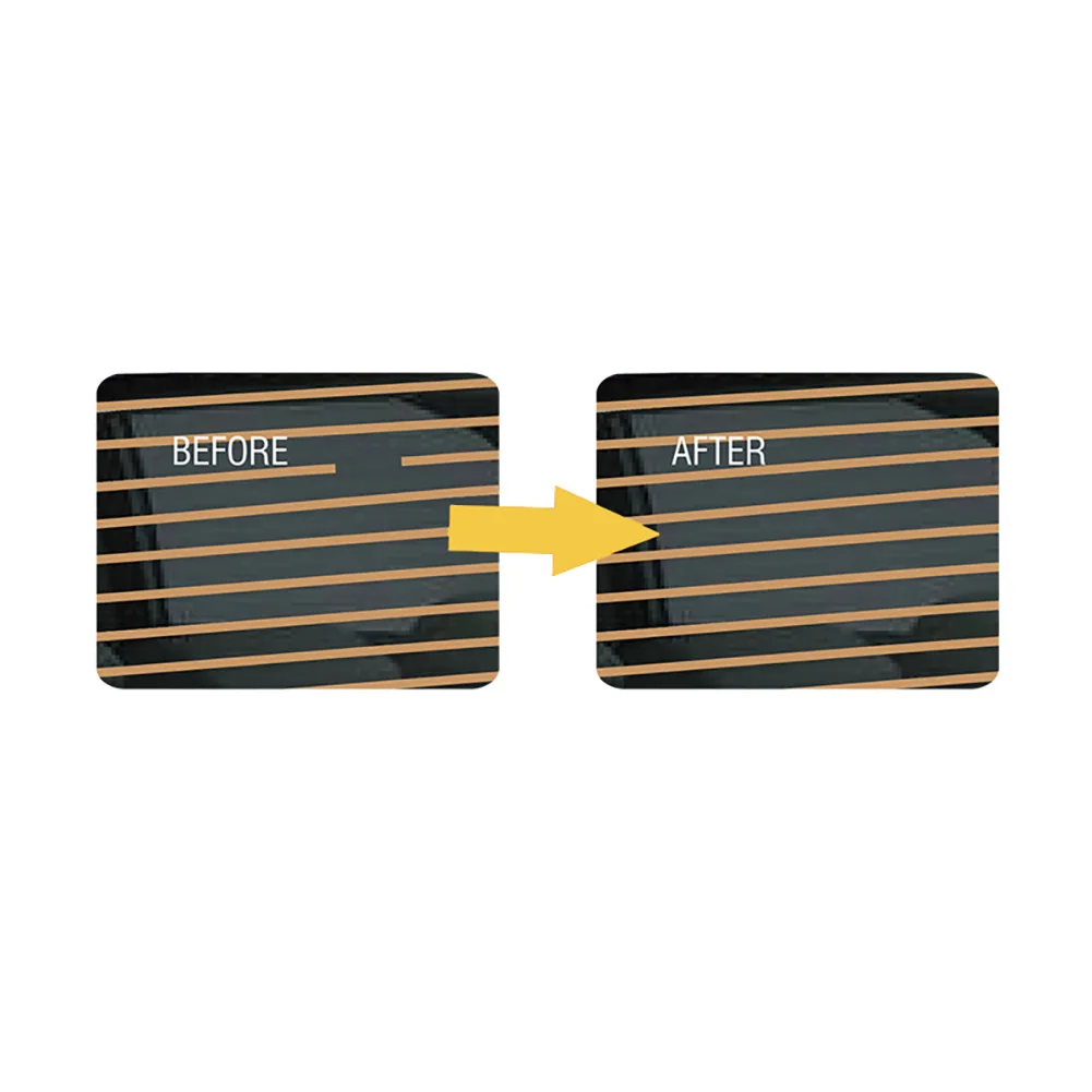 * Шаг 4. Используйте пластиковый скребок, чтобы сделать поверхности гладкими и плоскими. Убедитесь, что серебряное Ремонтное соединение перекрывает оба конца сломанной линии. Посмотрите через окно изнутри, светильник не должен быть показан через отремонтированную область. Если светильник просвечивается, нанесите другой слой ремонтной смеси.