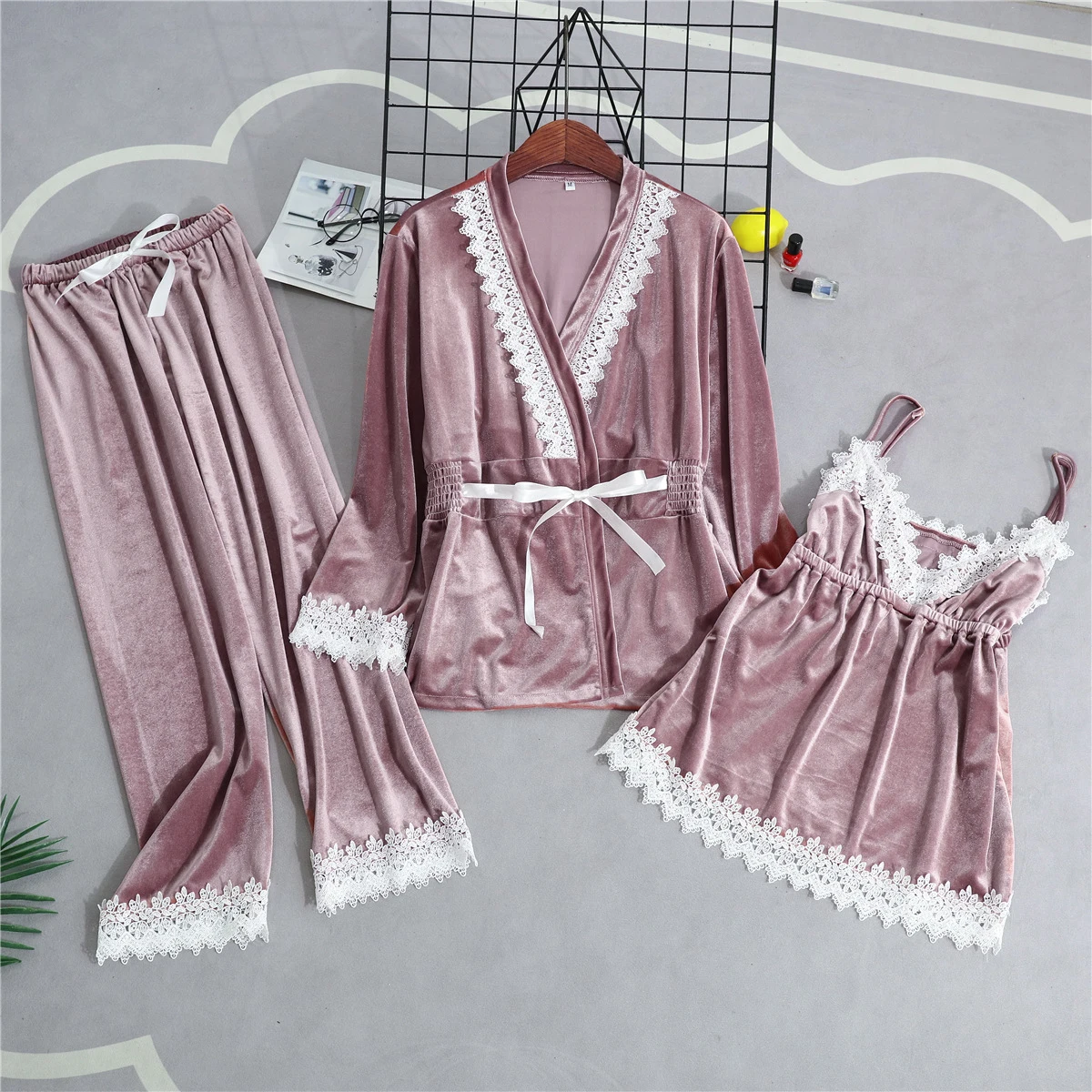 Отзывы о Женский Велюровый костюм-кимоно на бретельках с верхом и брюками | Женская одежда