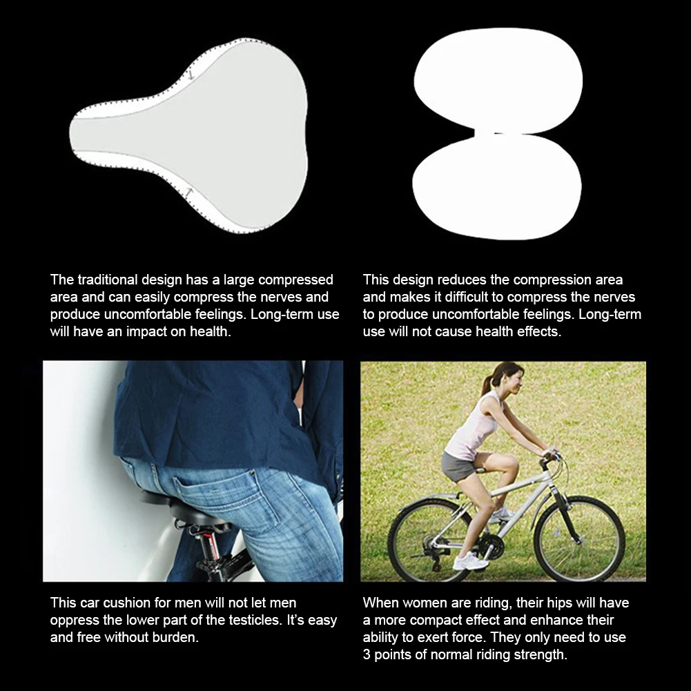 * 2. Конструкция без носа может уменьшить трение между ягодицей и подушкой, не давит на мужские яички, не мешает, позволяя вашей ягодице подходить к седлу с хорошим комфортом. Подходит как для мужчин, так и для женщин. Подходит для езды на велосипеде на дальние и короткие расстояния.