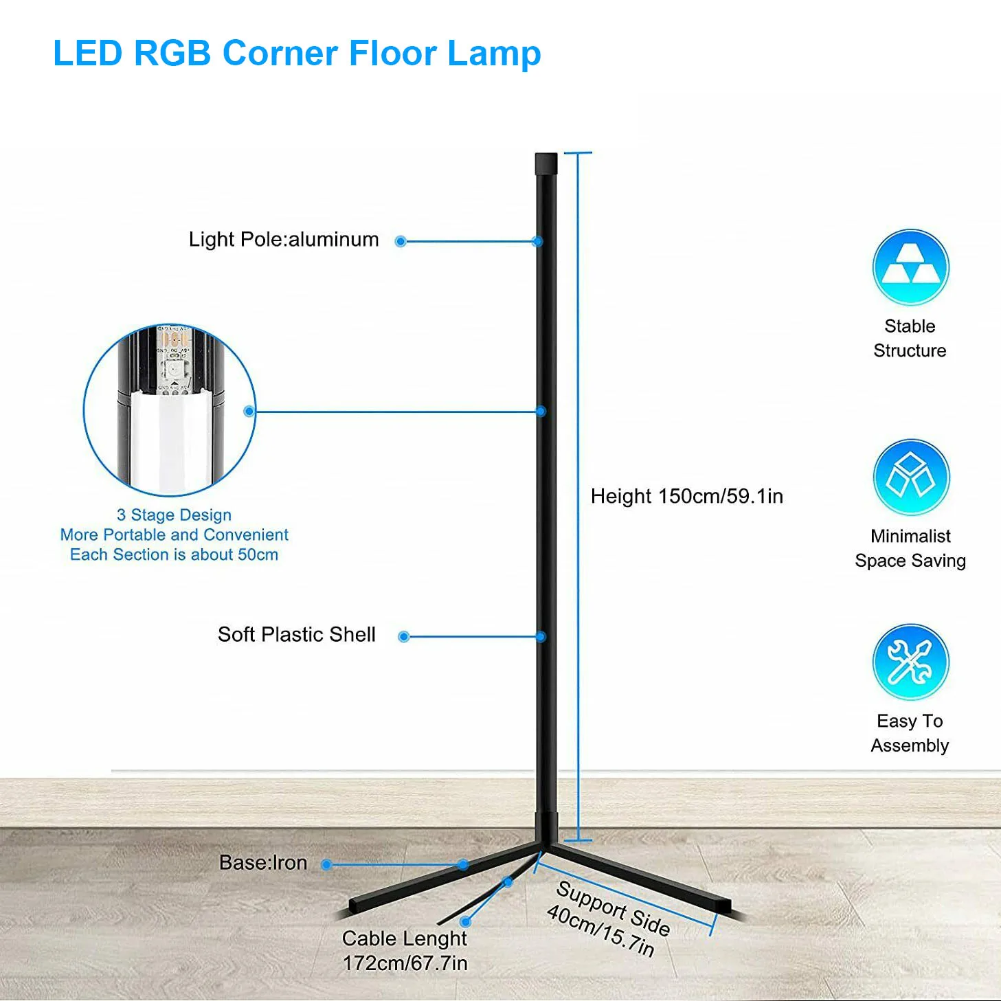 Инфракрасный пульт дистанционного управления, современный угловой напольный светильник с регулируемой яркостью, светодиодный светильник для украшения дома, гостиной, стоячая лампа USB/EU/US Power