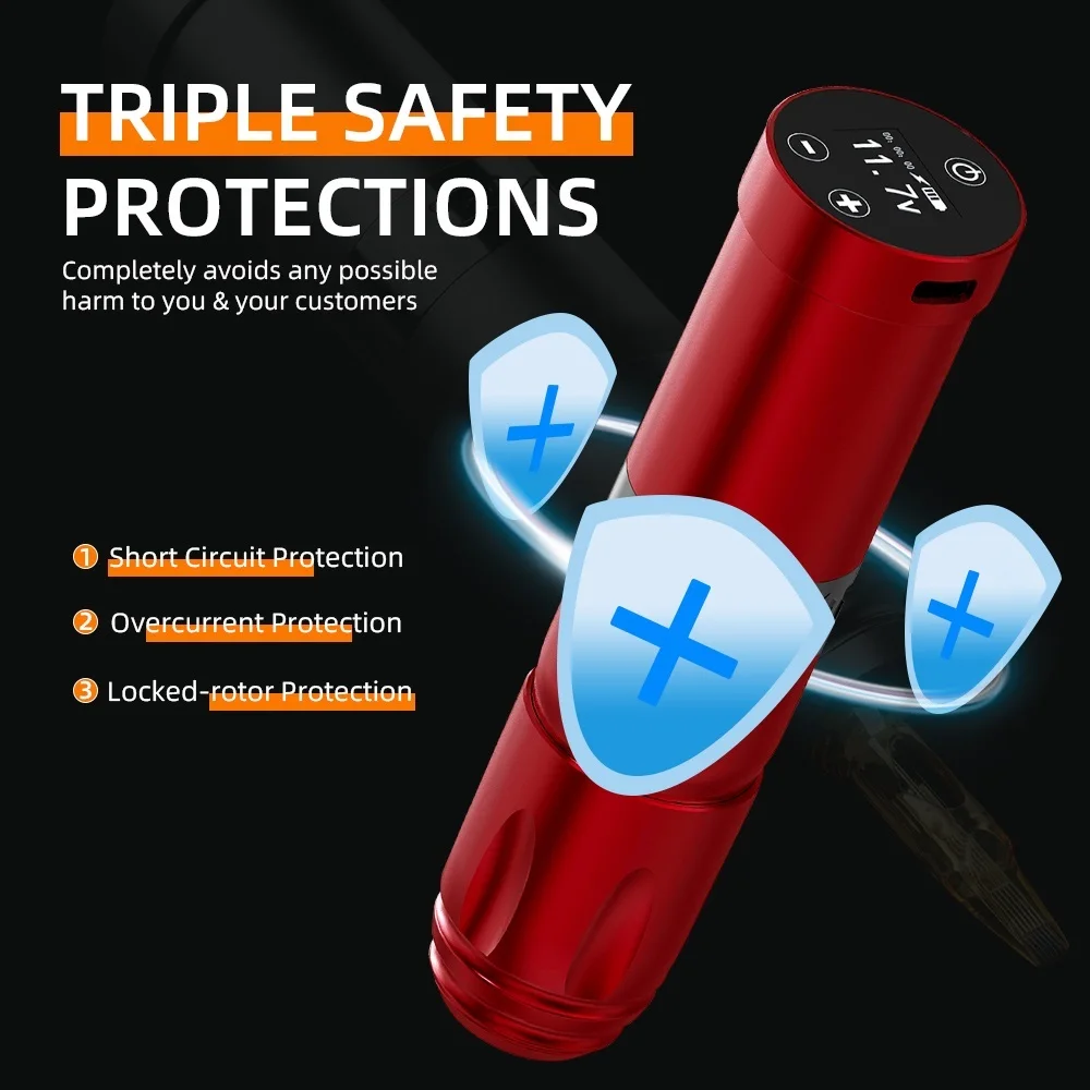 4. Переменное напряжение и ход. Вы можете свободно изменить их, чтобы настроить скорость вращения и длину иглы, на 100% соответствует вашему стилю татуировки и потребностям.