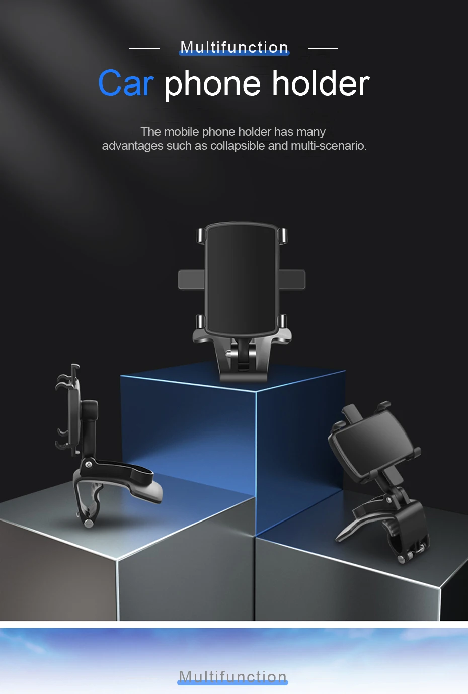 1. Легкий дизайн, подходит для 3-7 дюймов мобильный телефон s, может быть установлен на приборной панели, зеркало заднего вида и солнцезащитный козырек (советы: этот мобильный телефон держатель можно использовать дома)