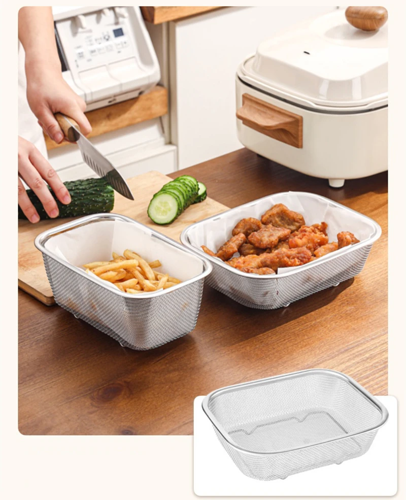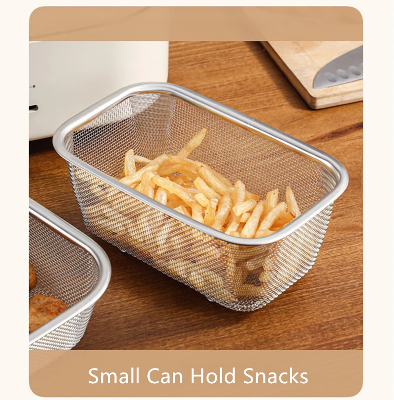 1. Квадратная корзина для жарки, материал из нержавеющей стали, прочная и долговечная.