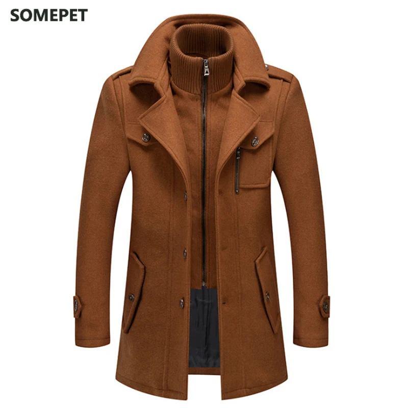 Отзывы о Мужское шерстяное пальто однотонное с двойным воротником устойчивое к холоду
