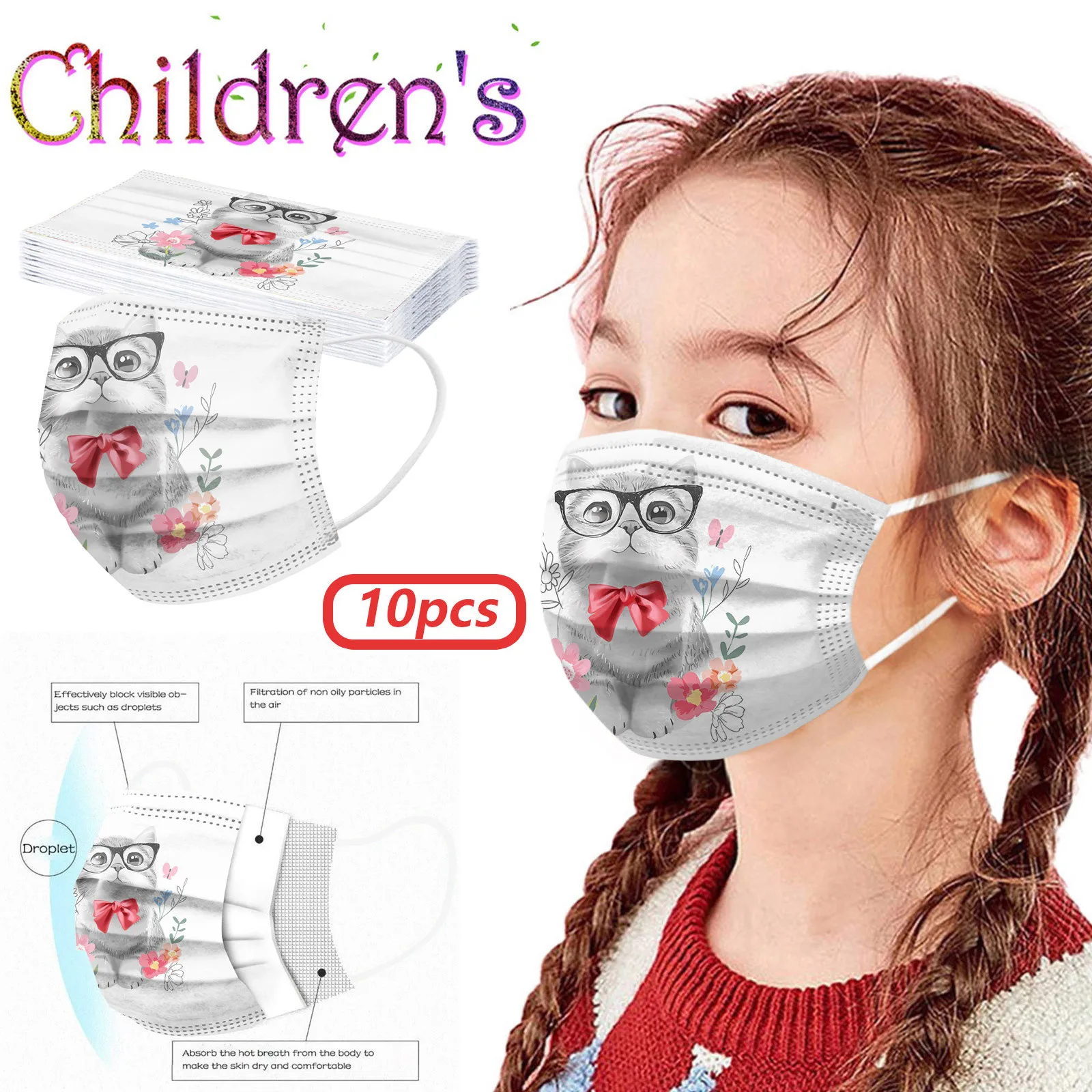 Милый дизайн с принтом: Милый принт, который нравится детям, подходит для формы лица, может держать нос, рот и лицо внутри и имеет полную посадку. Светильник, эластичный наушник, хорошая воздухопроницаемость, легко носить и снимать.
