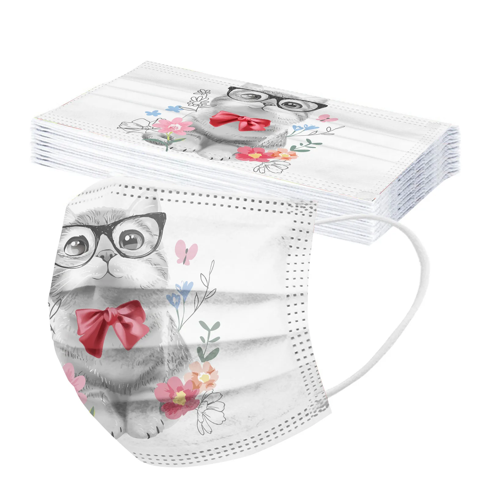 Отзывы о 10/50pcs Disposable Children Animals Mask Cute Dogs Print Flowers 3ply Ear Loop Kids Cat Design Face Mascarillas Masque - купить по