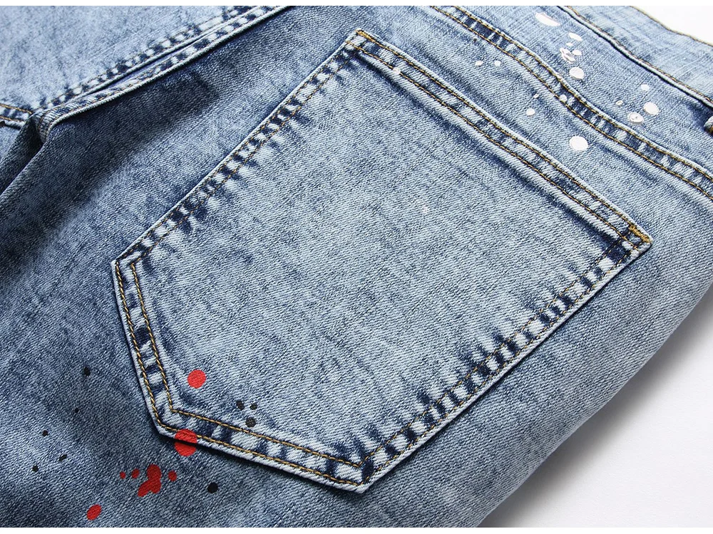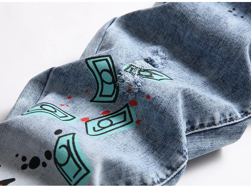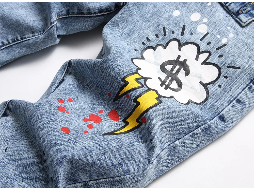 Отзывы о Мужские Стрейчевые джинсы с принтом модные пламенем и буквами окрашенные в