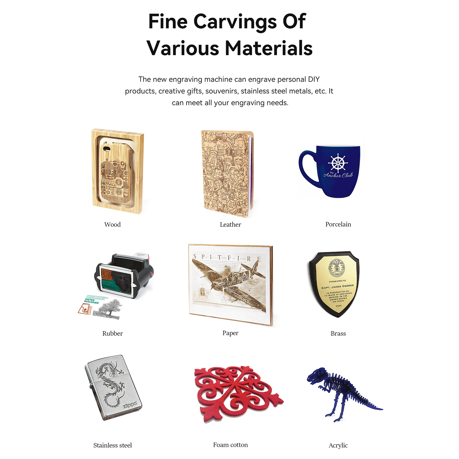 Предметы резьбы: дерево, бамбук, картон, пластик, кожа, печатная плата, оксид алюминия, не отражающие