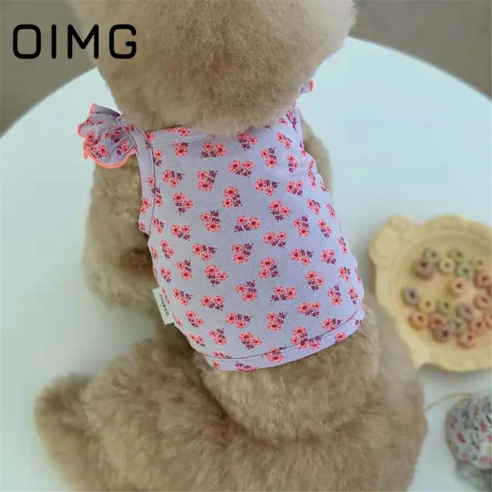OIMG 2022 Одежда для маленьких собак жилеты с цветочным рисунком для питомцев, кошек, Тедди, Бишон, чихуахуа, летающий рукав, одежда для щенков летняя майка для собак, Топ